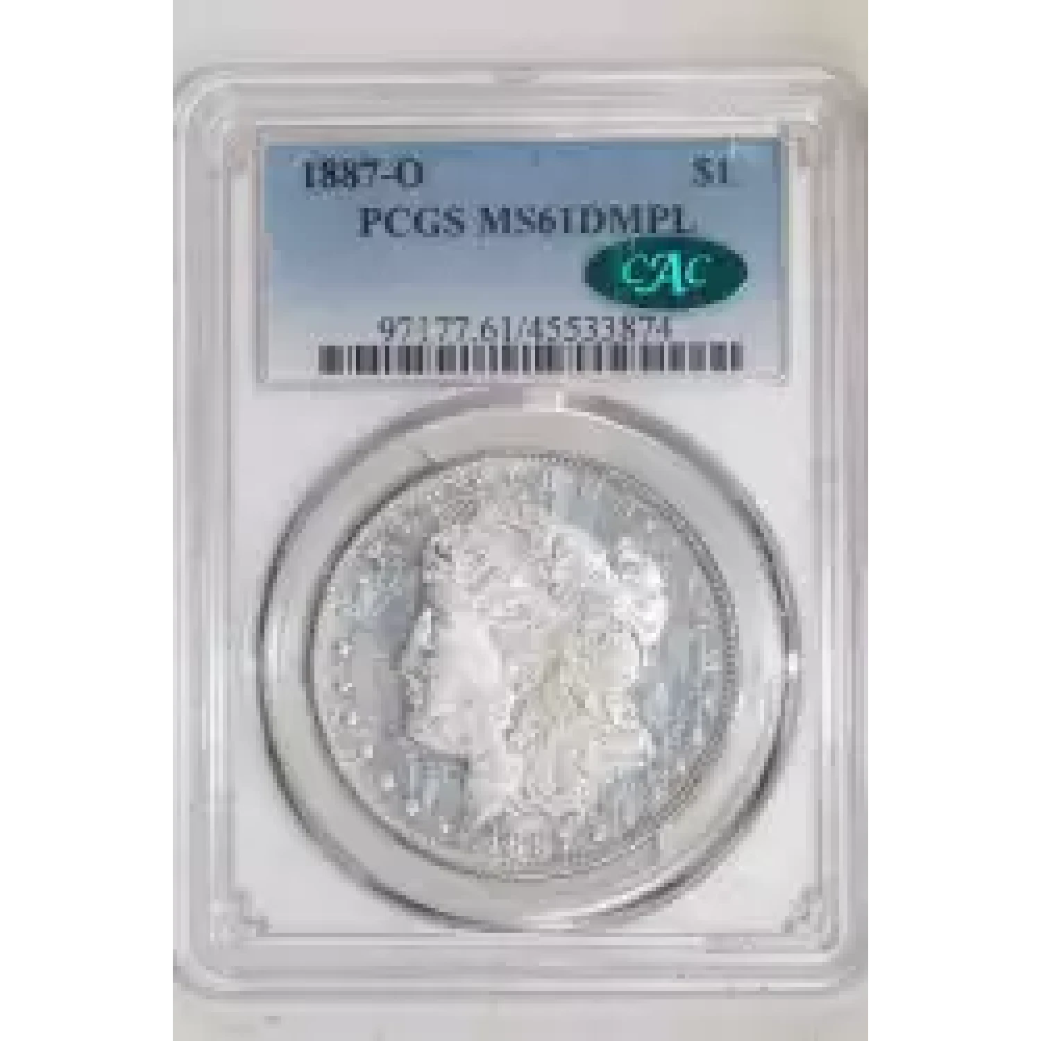 519397 | 1887-O Morgan Silver Dollar PCGS MS-61 DMPL | PCGS | MS-61 | Sold: 08/09/2023 | $400 |