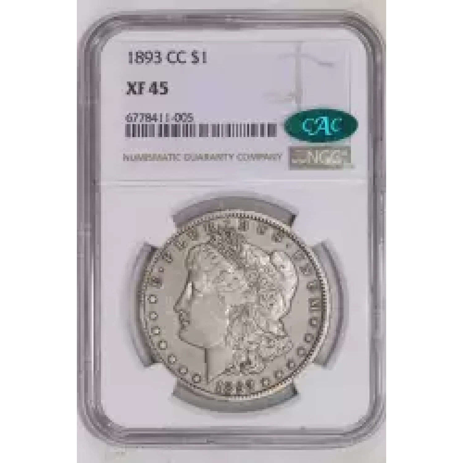 518401 | 1893-CC Morgan Silver Dollar PCGS XF-40 | PCGS | XF-40 | Sold: 08/08/2023 | $3,595 |