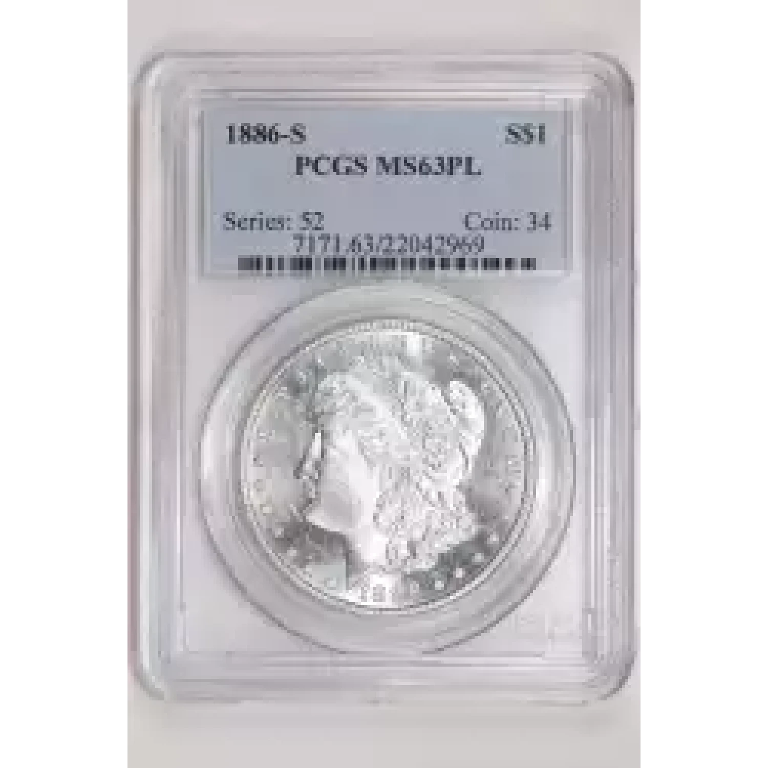 522313 | 1886-S Morgan Silver Dollar PCGS MS-63 PL | PCGS | MS-63 | Sold: 30/04/2024 | $1,125 |