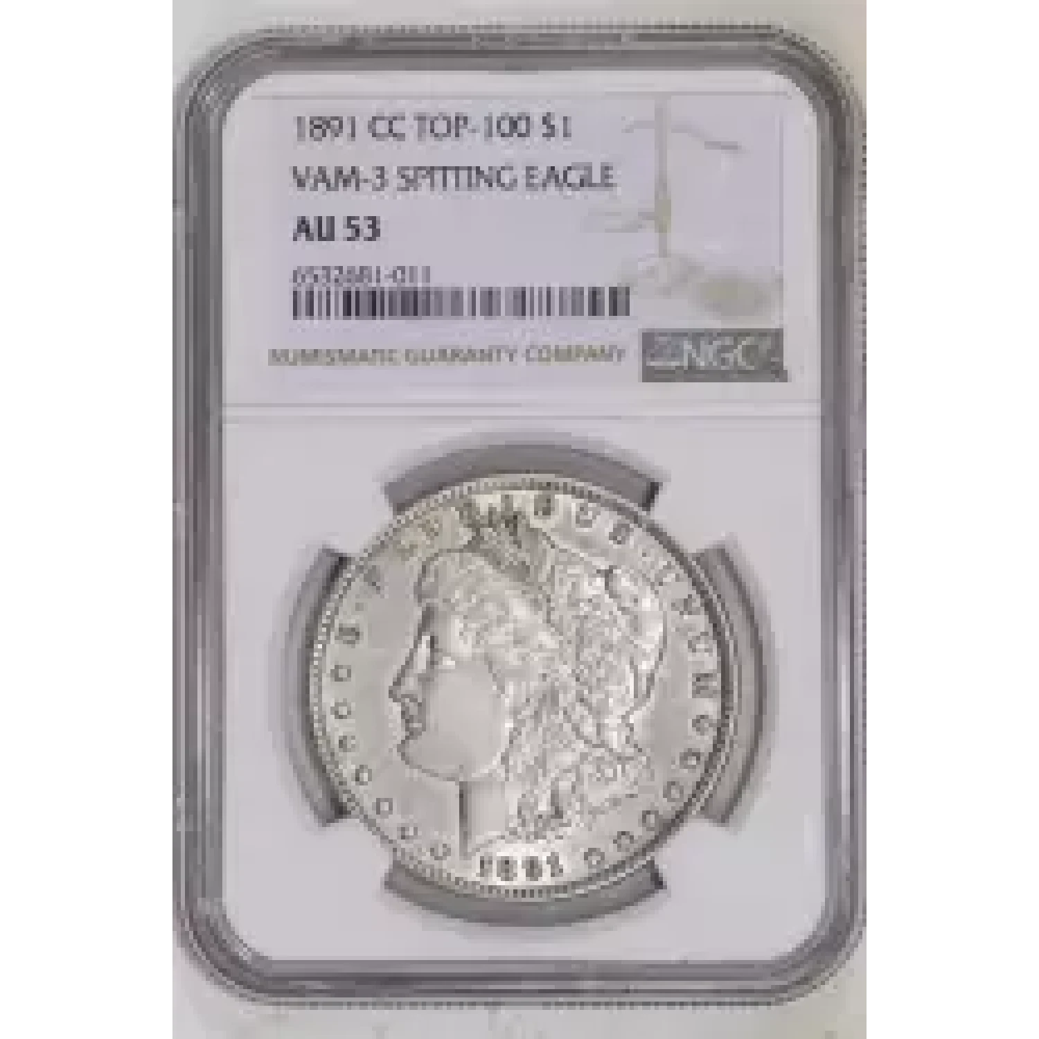 520516 | 1891-CC Morgan Silver Dollar NGC AU-53 CC VAM-3 SPITTING EAGLE | NGC | AU-53 | Sold: 07/11/2023 | $525 |