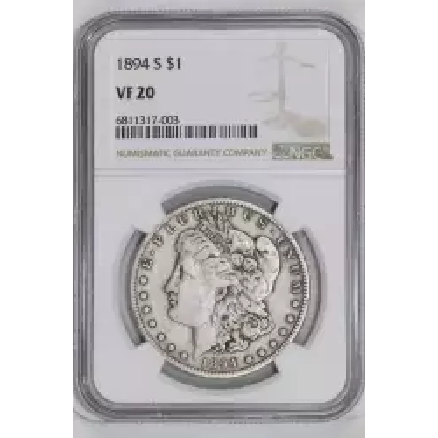 522065 | 1894-S Morgan Silver Dollar PCGS VG-8 | PCGS | VG-8 | Sold: 29/04/2024 | $130 |
