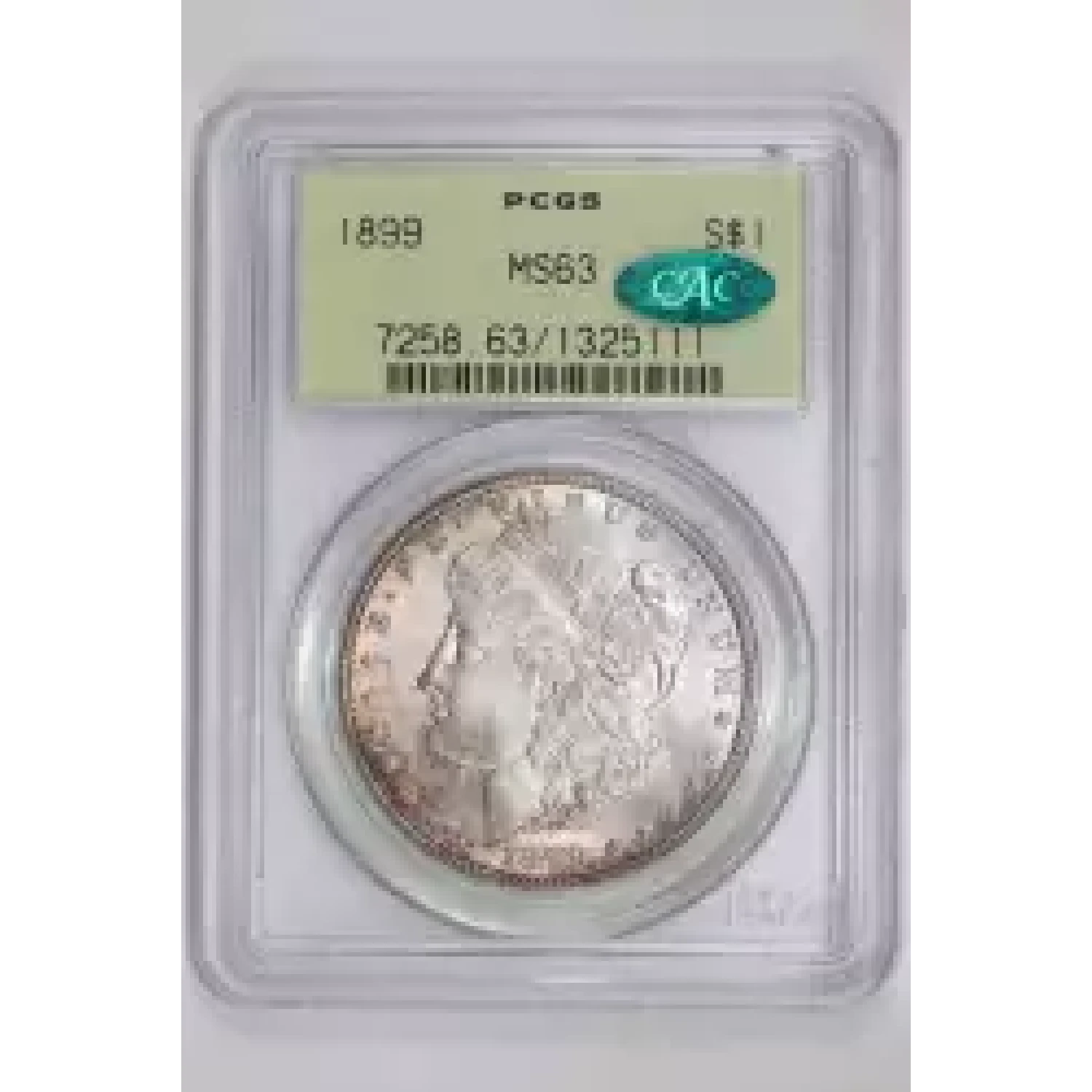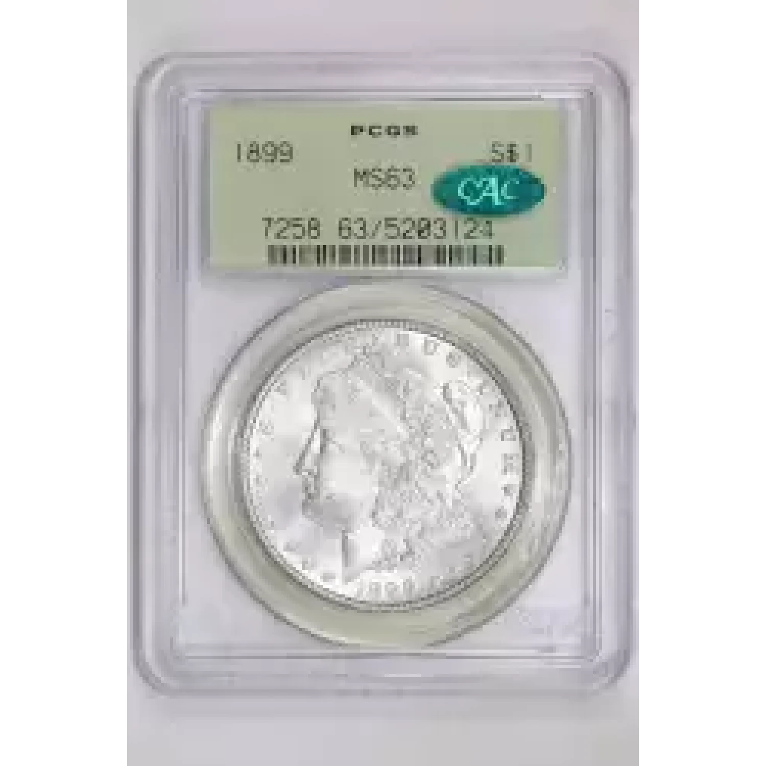 522473 | 1899 Morgan Silver Dollar PCGS MS-63 CAC | PCGS | MS-63 | Sold: 02/10/2024 | $535 |