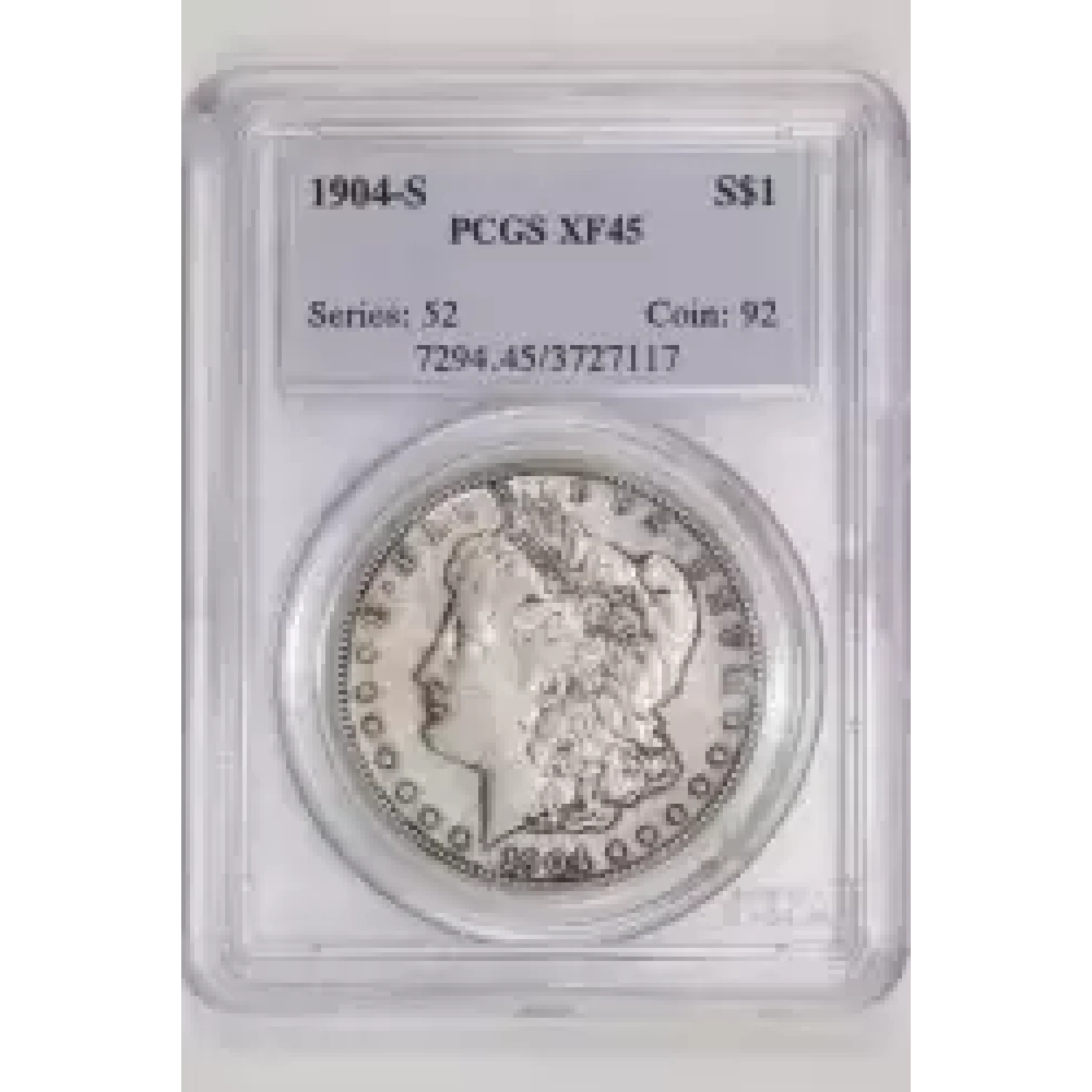 522253 | 1904-S Morgan Silver Dollar PCGS XF-45 | PCGS | XF-45 | Sold: 30/04/2024 | $730 |
