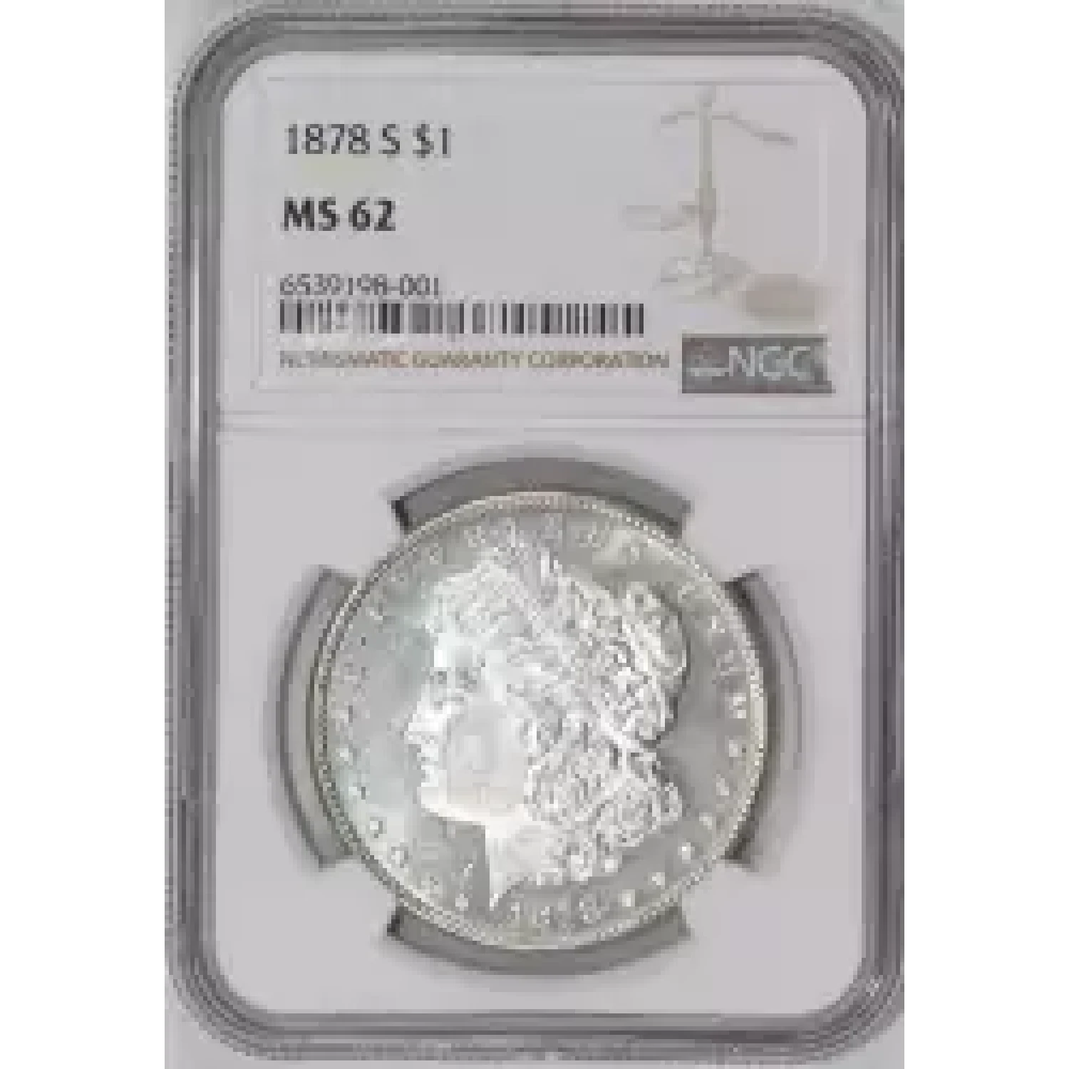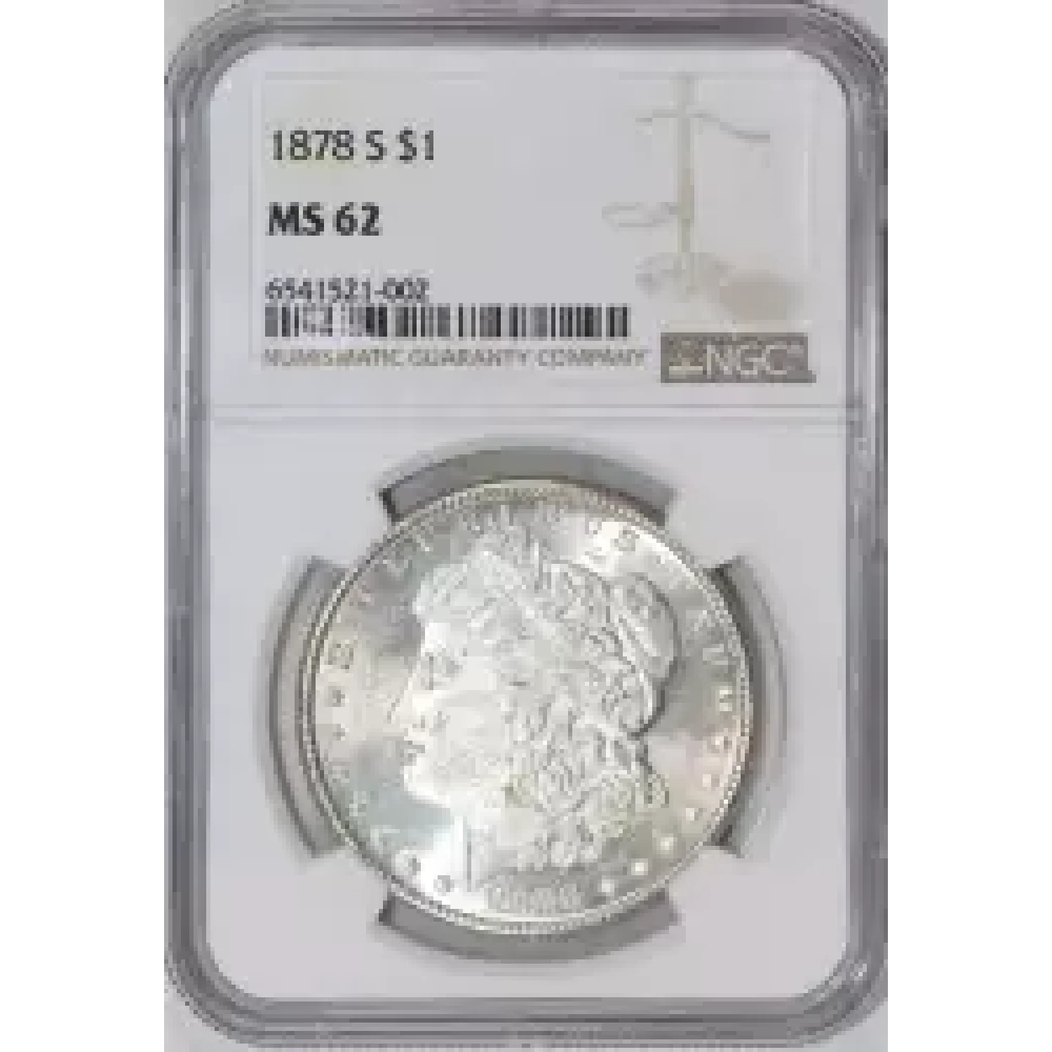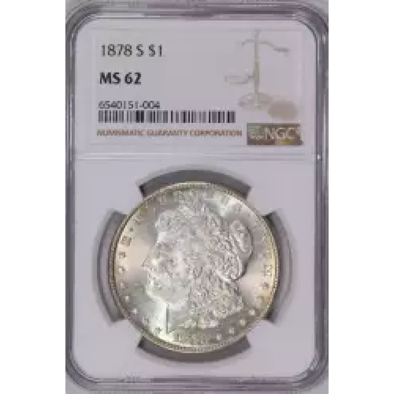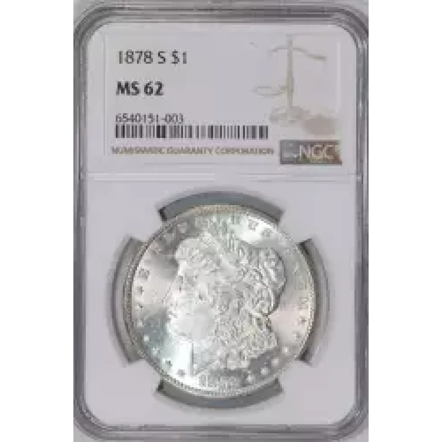 500792 | 1878-S Morgan Silver Dollar NGC MS-62 | NGC | MS-62 | Sold: 02/03/2022 | $110 |