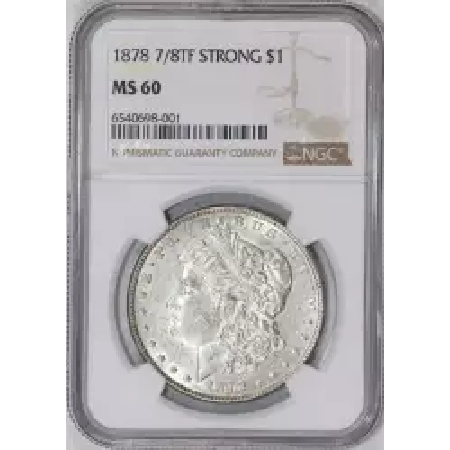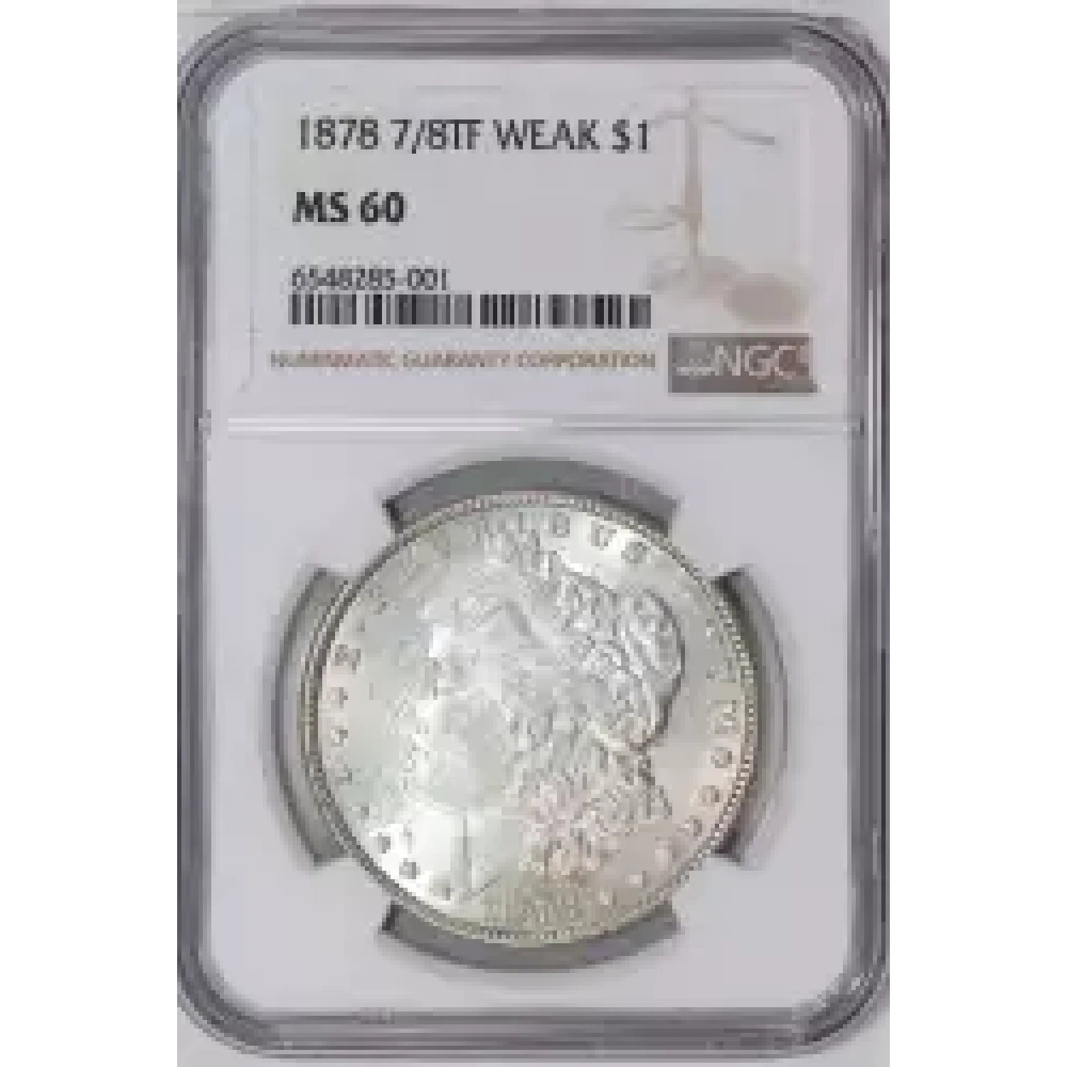500787 | 1878 Morgan Silver Dollar NGC MS-60 7/8TF | NGC | MS-60 | Sold: 07/03/2023 | $300 |