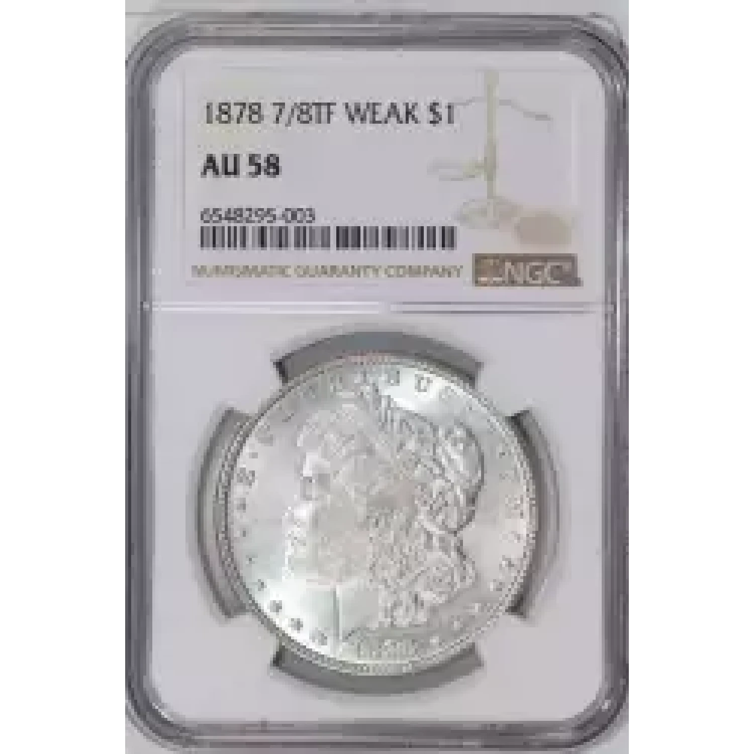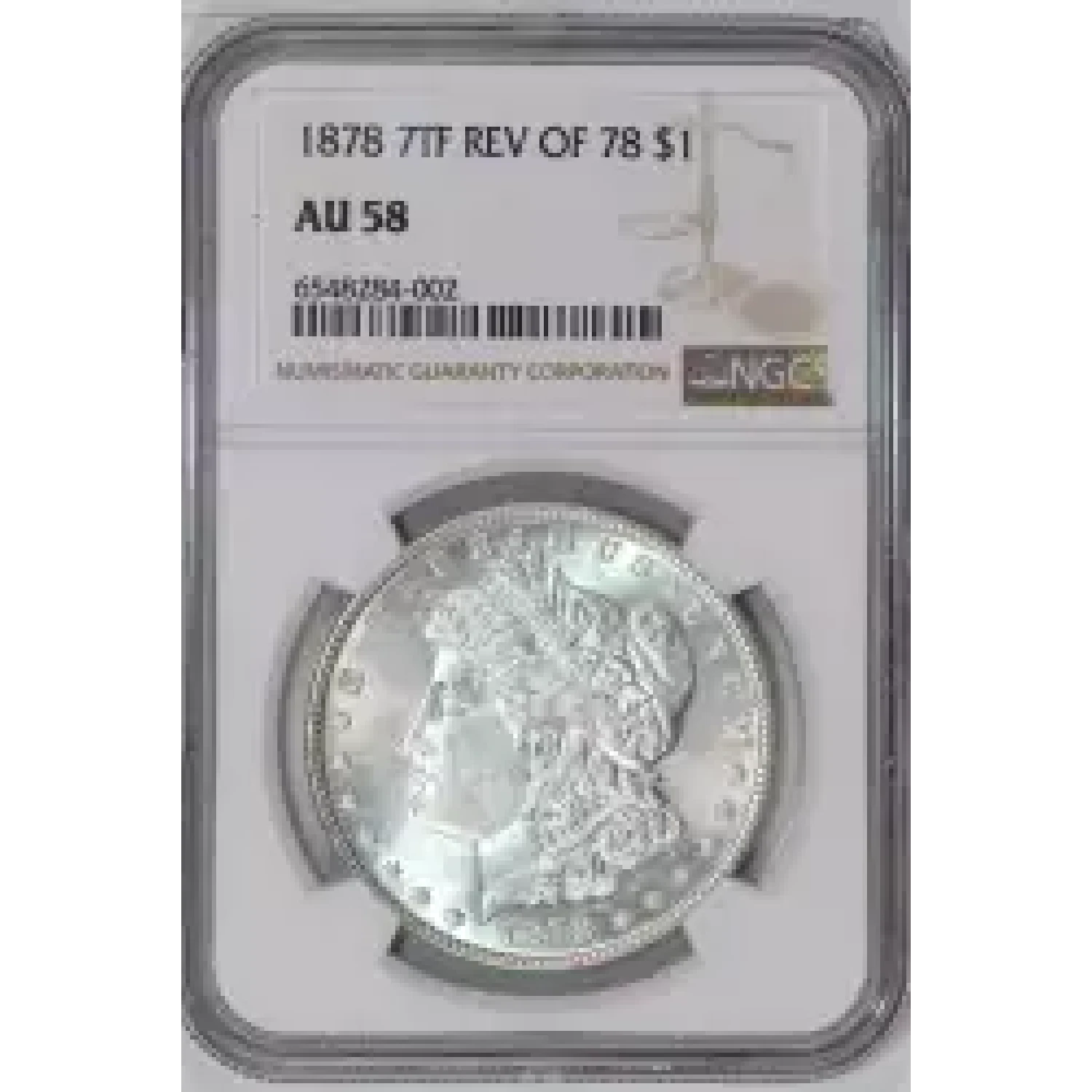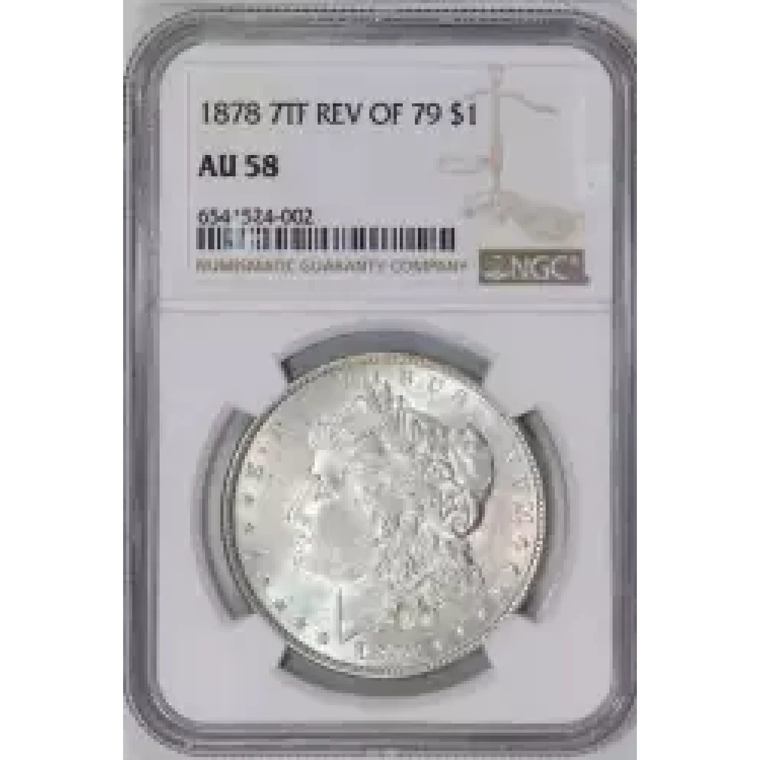 500710 | 1878 Morgan Silver Dollar NGC AU-58 7TF | NGC | AU-58 | Sold: 04/04/2023 | $250 |