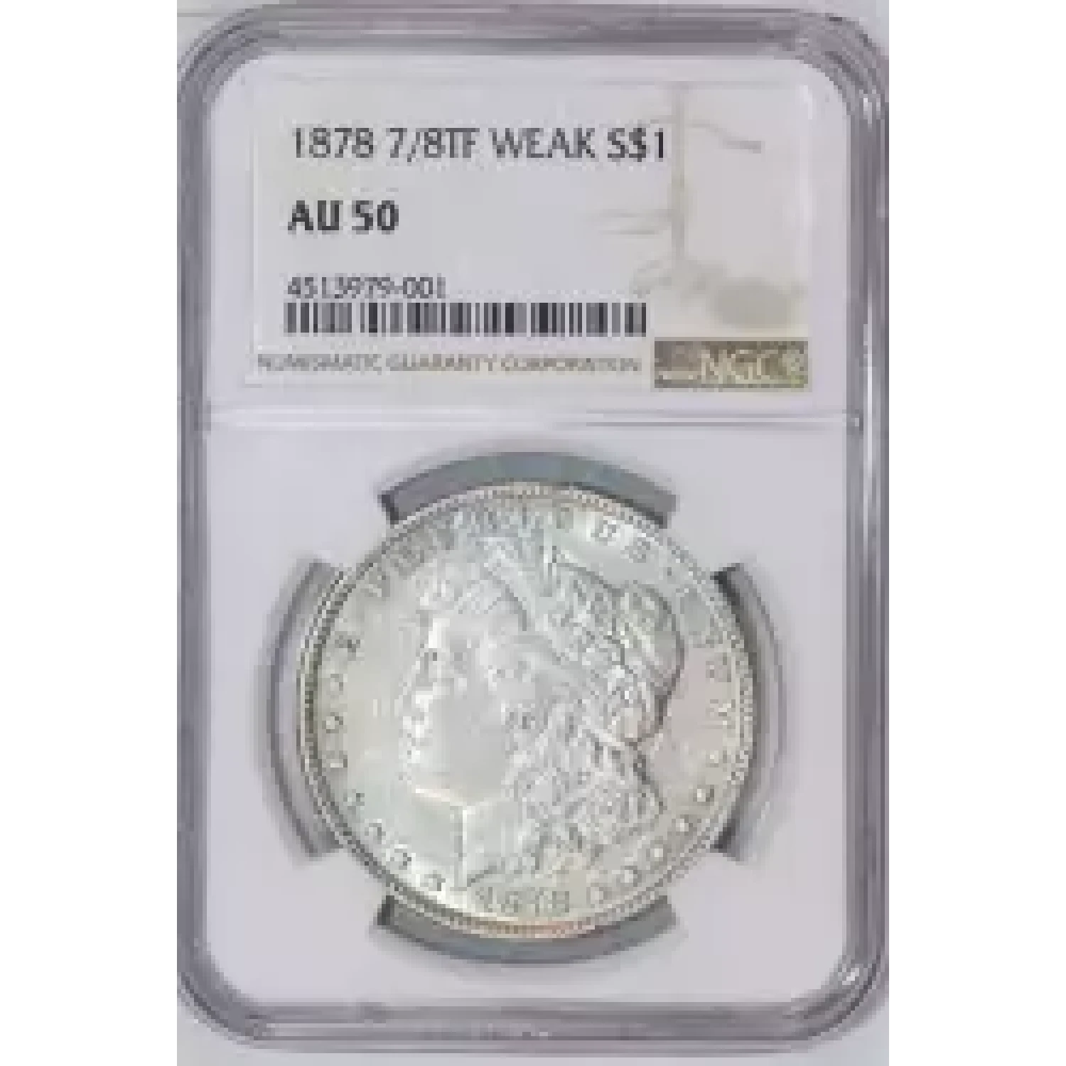 501447 | 1878 Morgan Silver Dollar NGC AU-50 7/8TF | NGC | AU-50 | Sold: 13/04/2022 | $110 |
