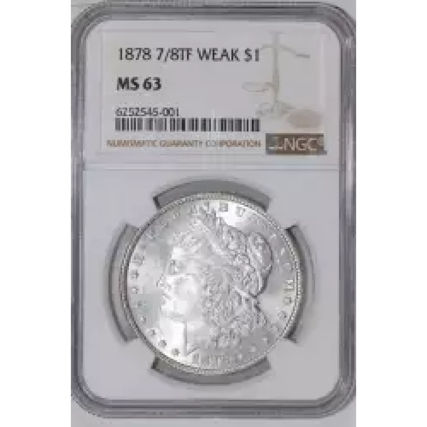 501448 | 1878 Morgan Silver Dollar NGC MS-63 7/8TF | NGC | MS-63 | Sold: 20/04/2022 | $250 |