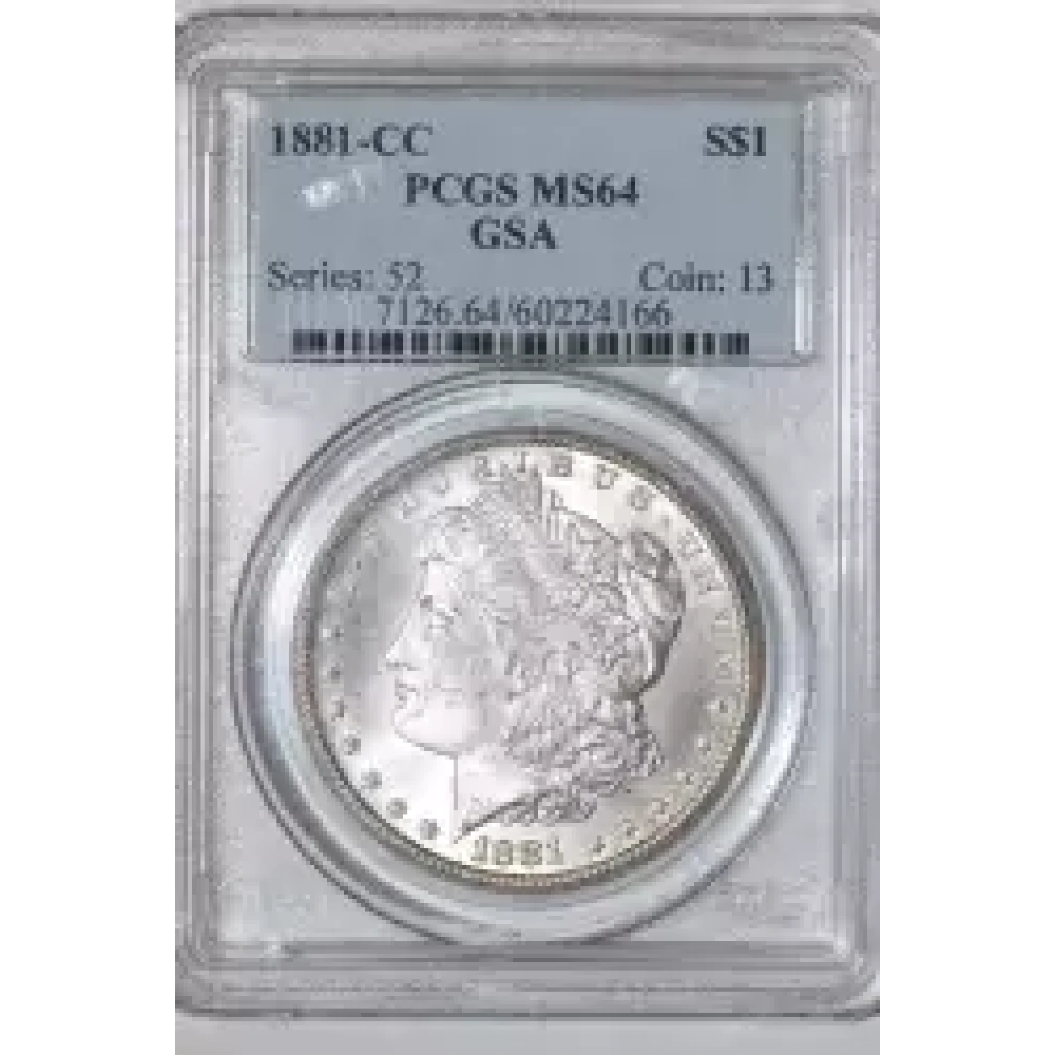 501467 | 1881-CC Morgan Silver Dollar NGC MS-66 PL | NGC | MS-66 | Sold: 10/08/2022 | $3,750 |