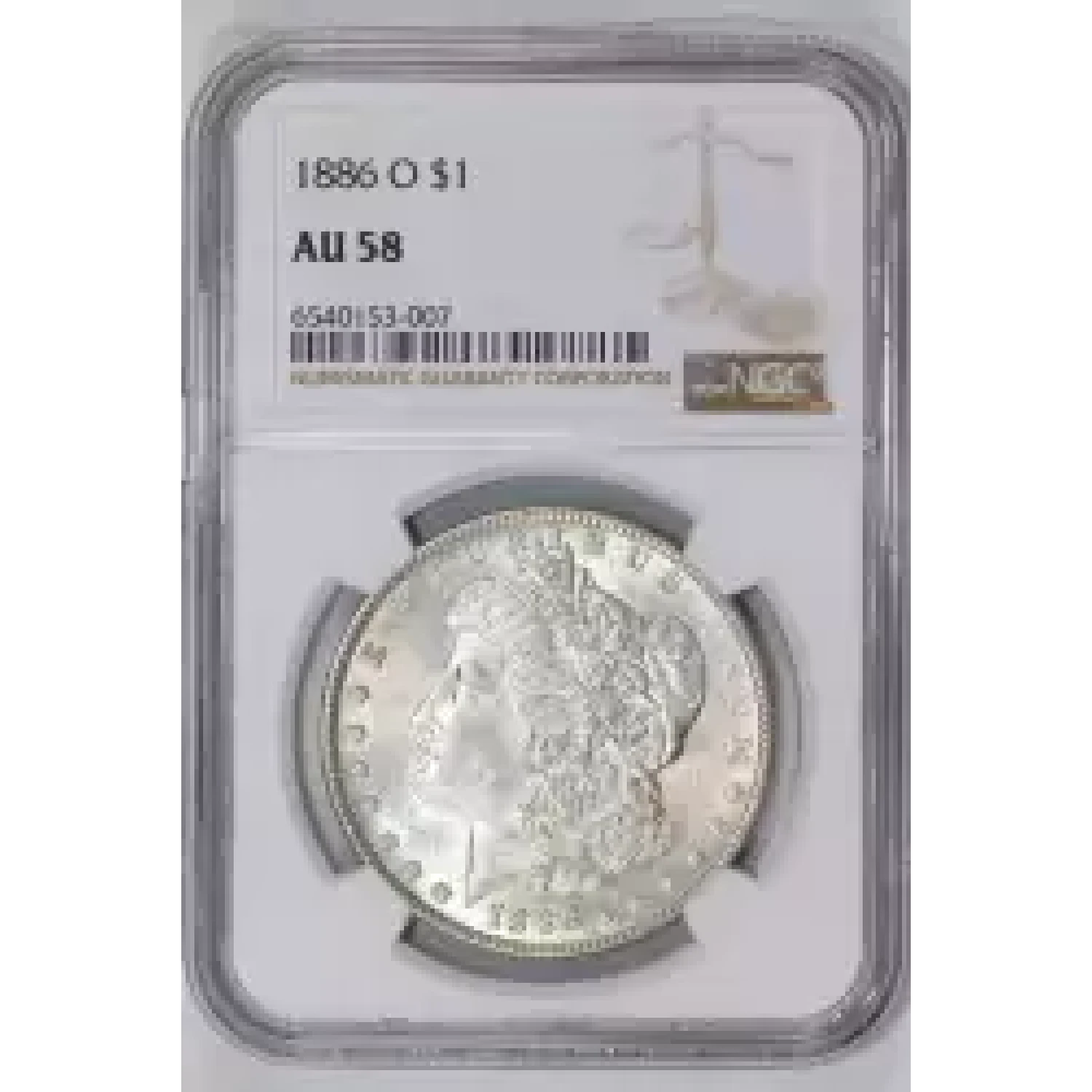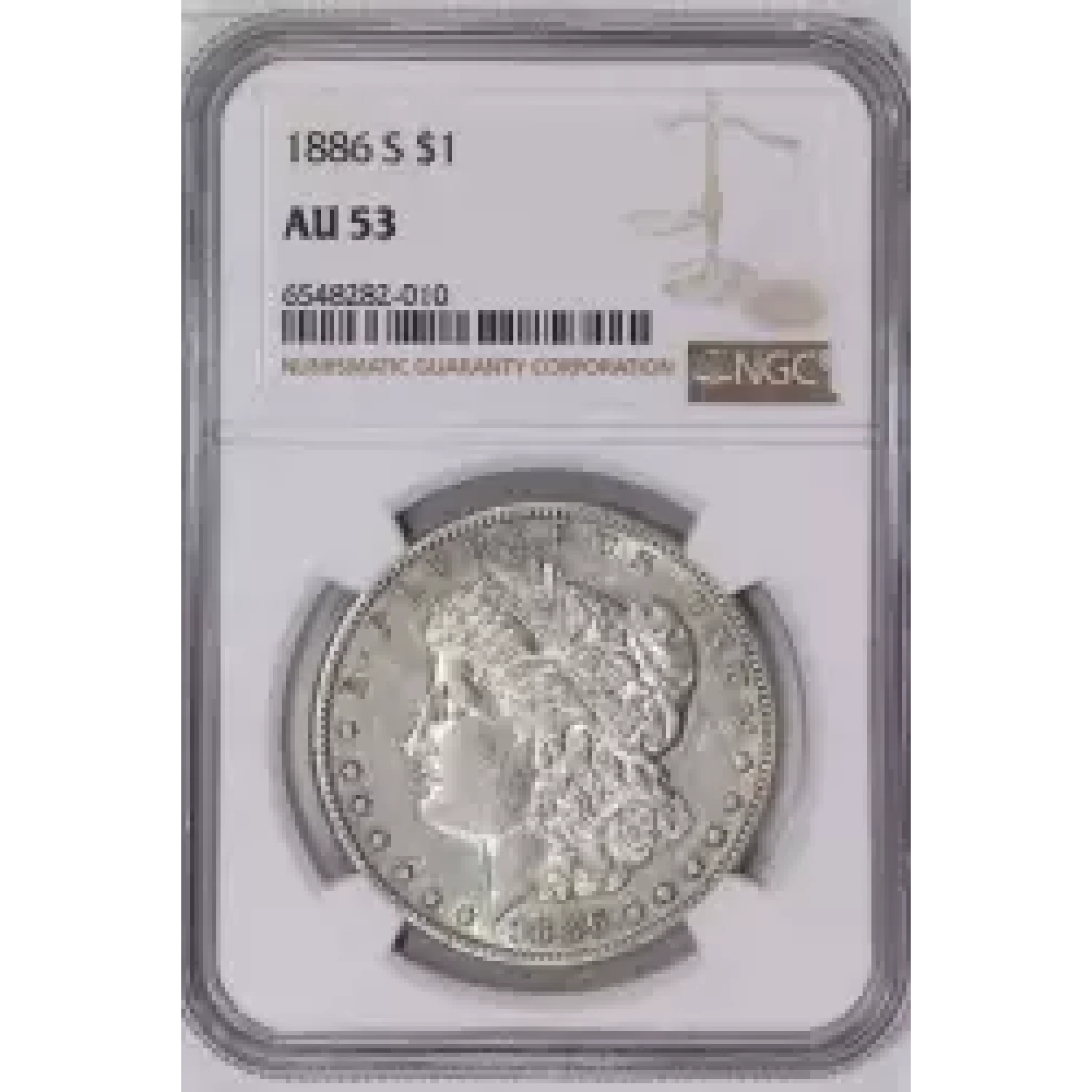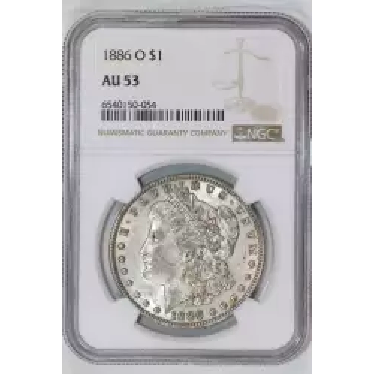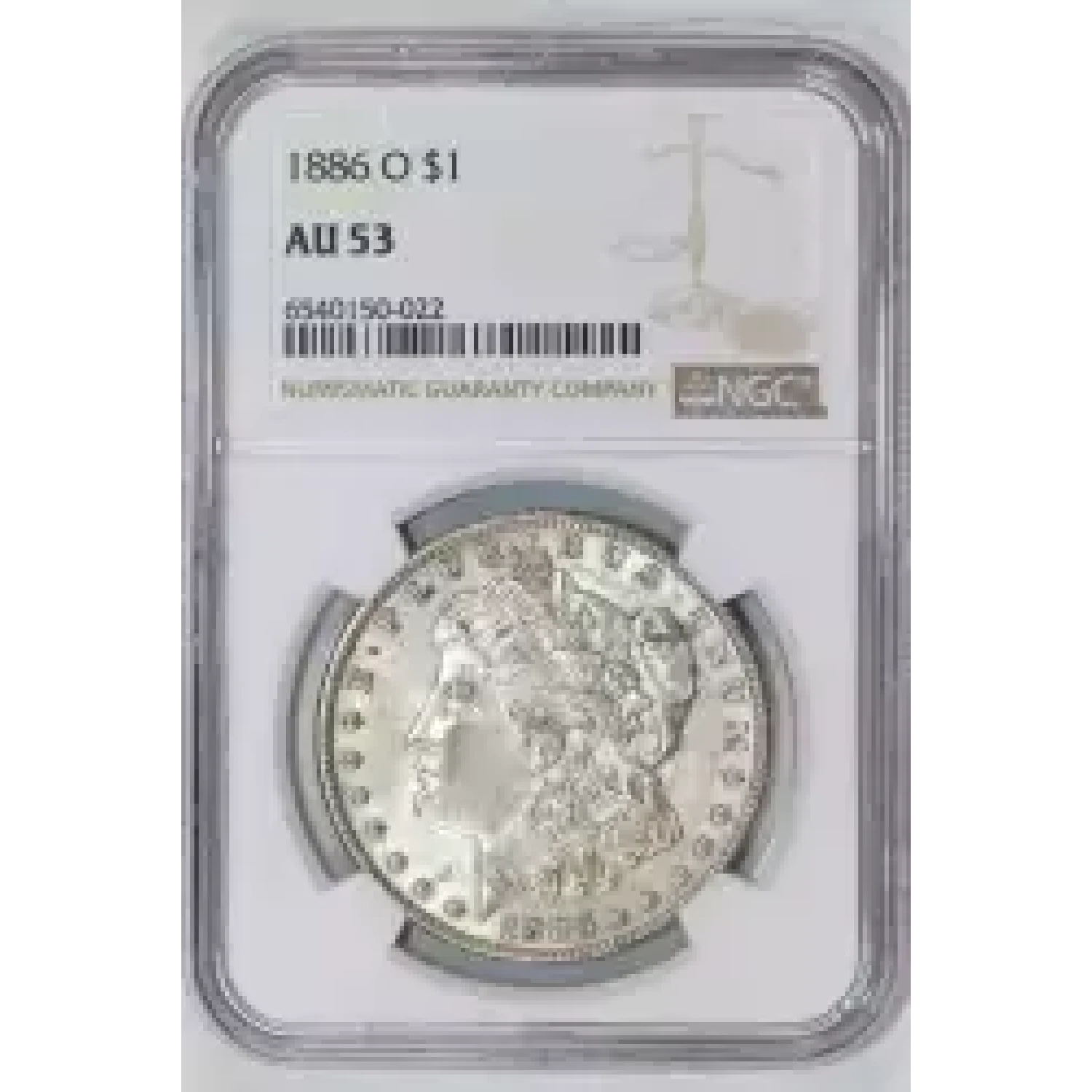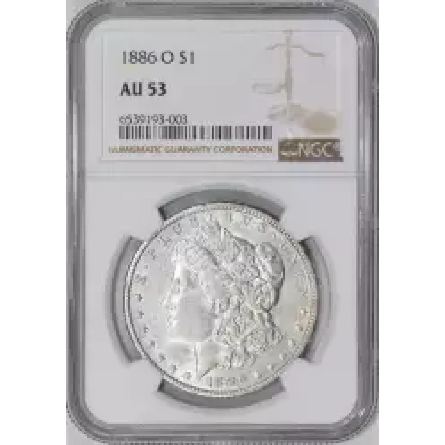 500812 | 1886-O Morgan Silver Dollar NGC AU-53 | NGC | AU-53 | Sold: 08/03/2022 | $250 |