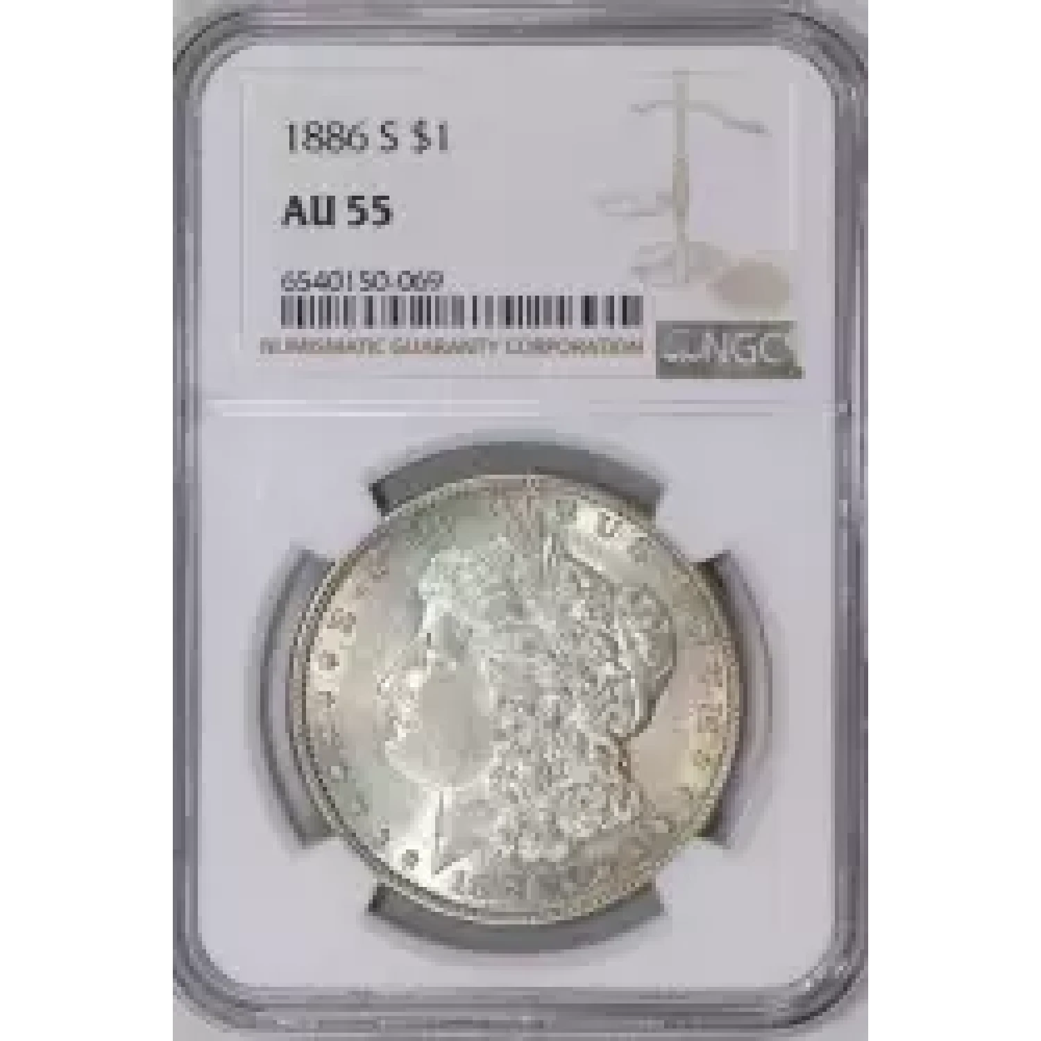 500814 | 1886-S Morgan Silver Dollar NGC AU-55 | NGC | AU-55 | Sold: 09/03/2022 | $280 |