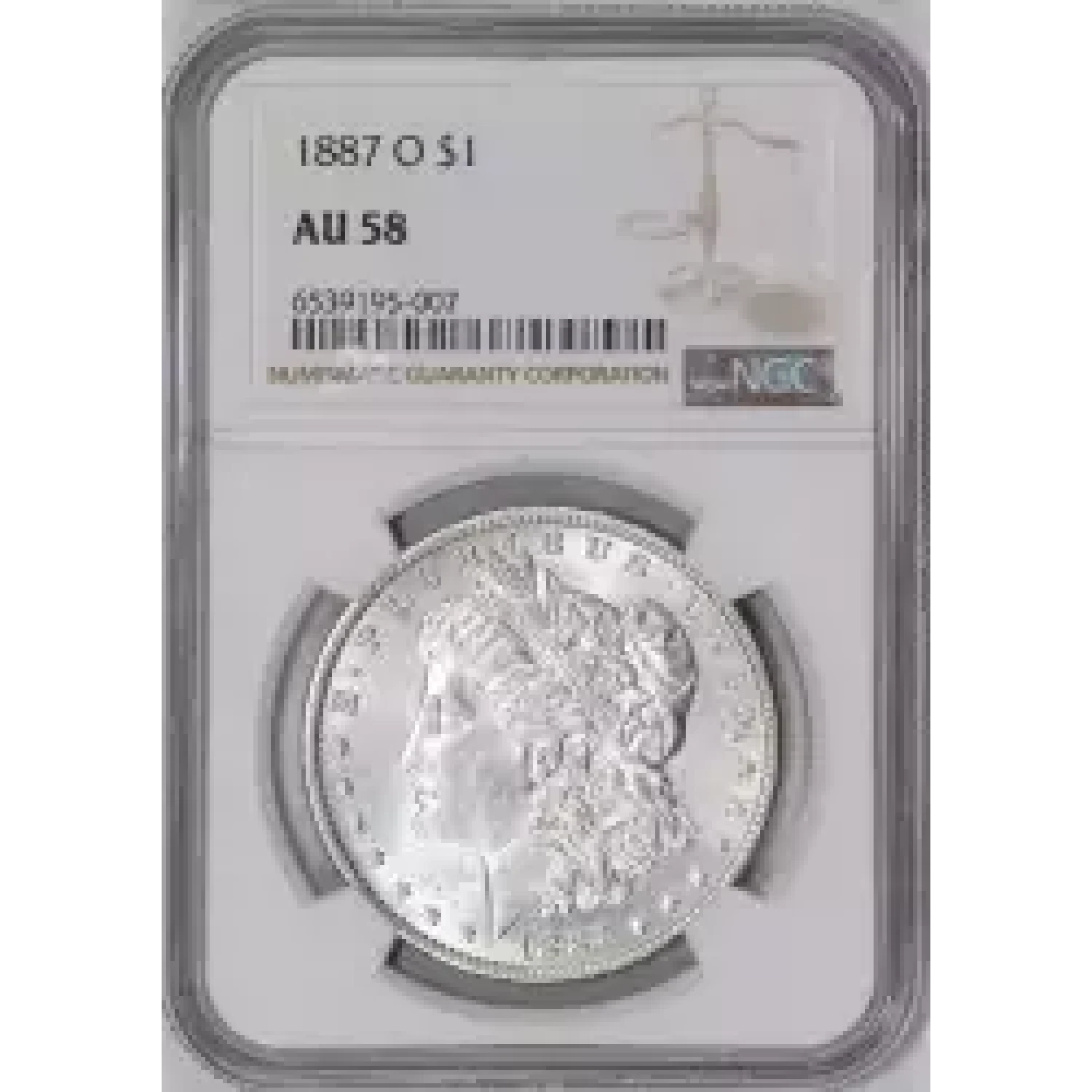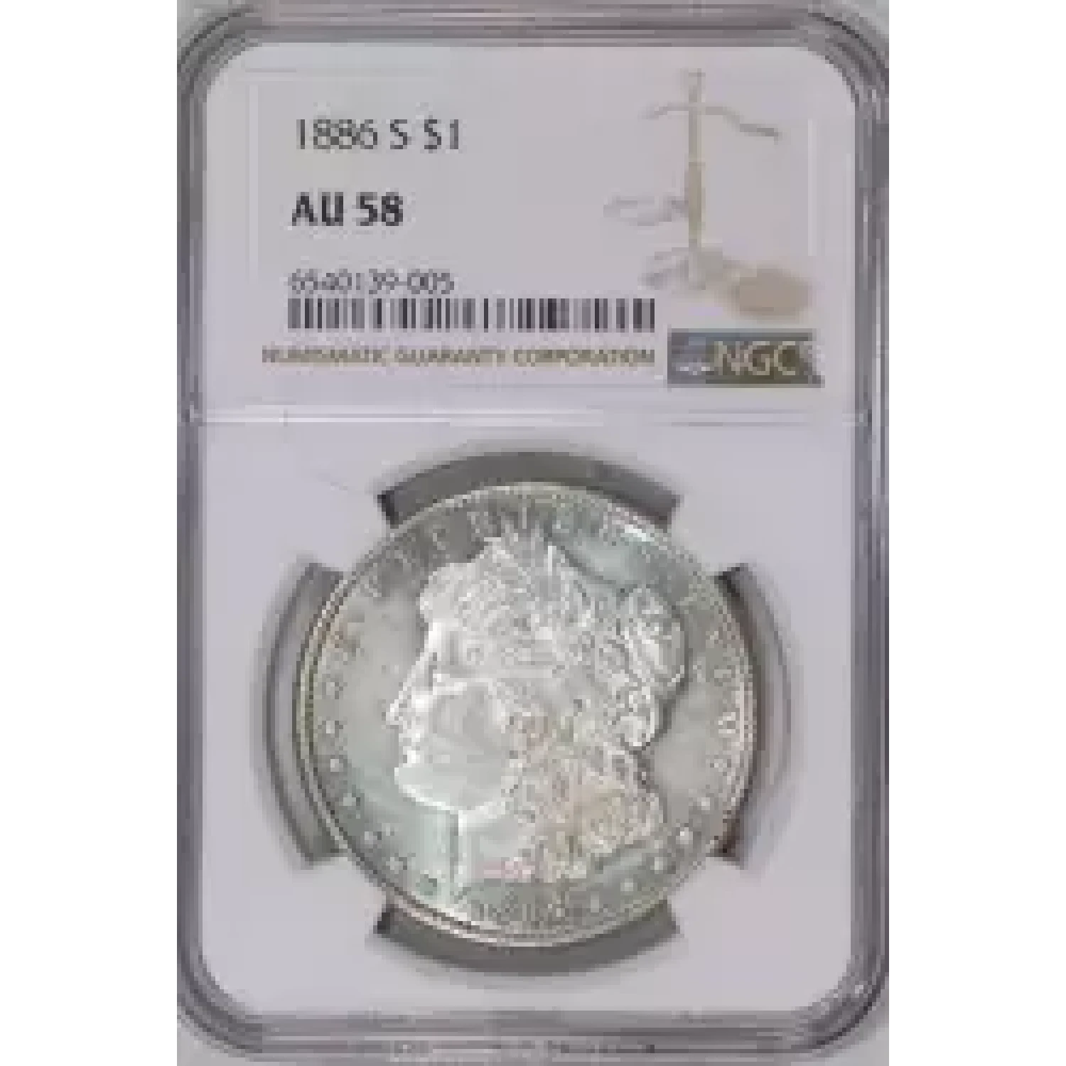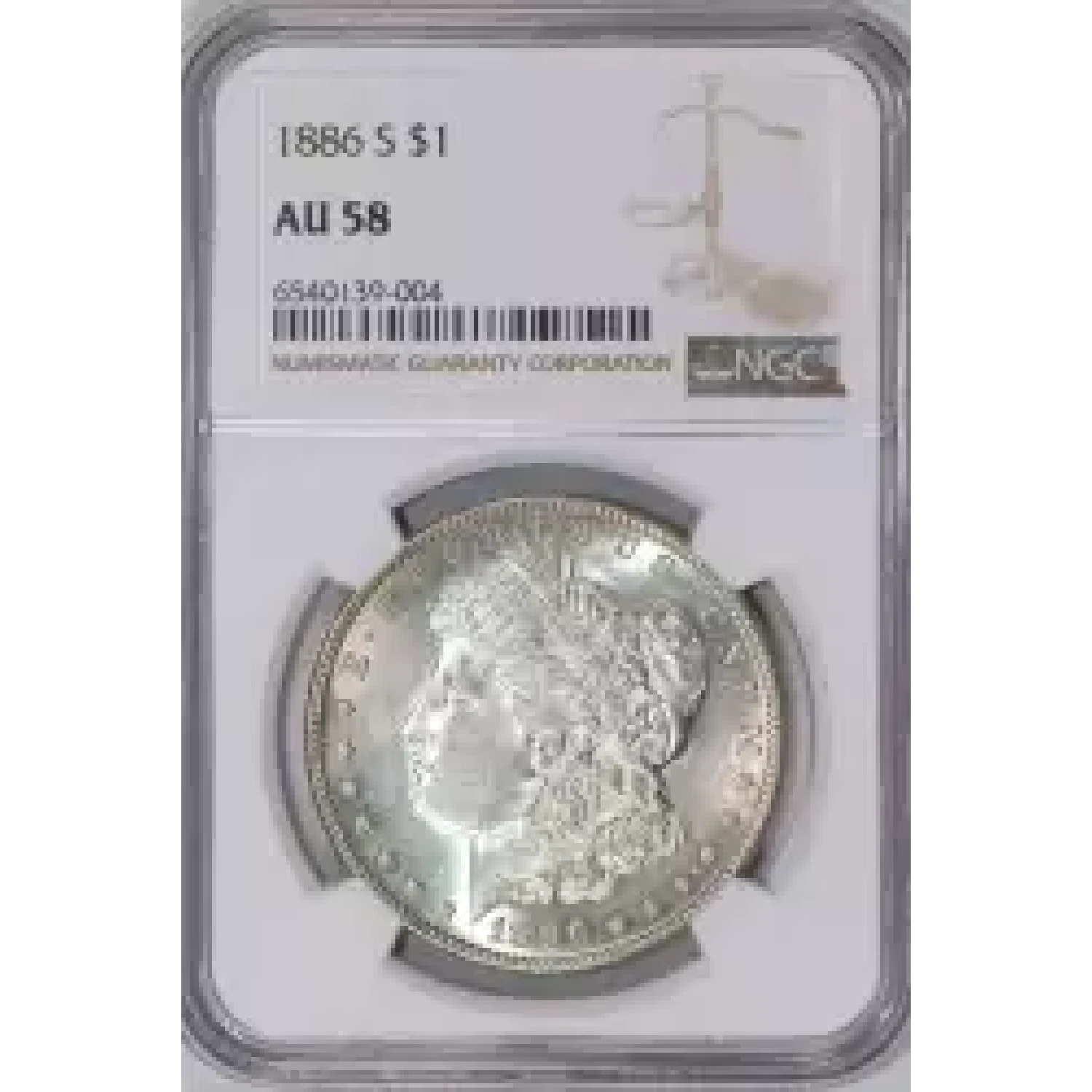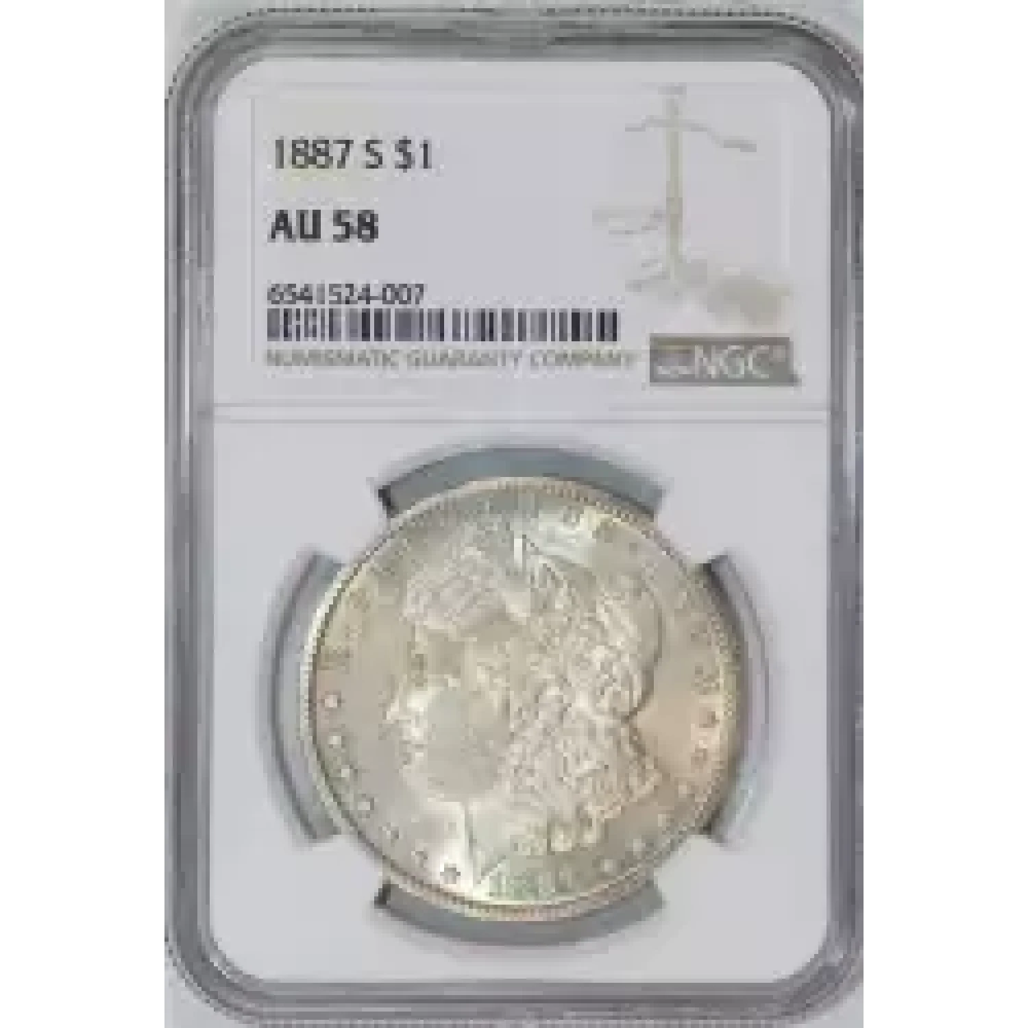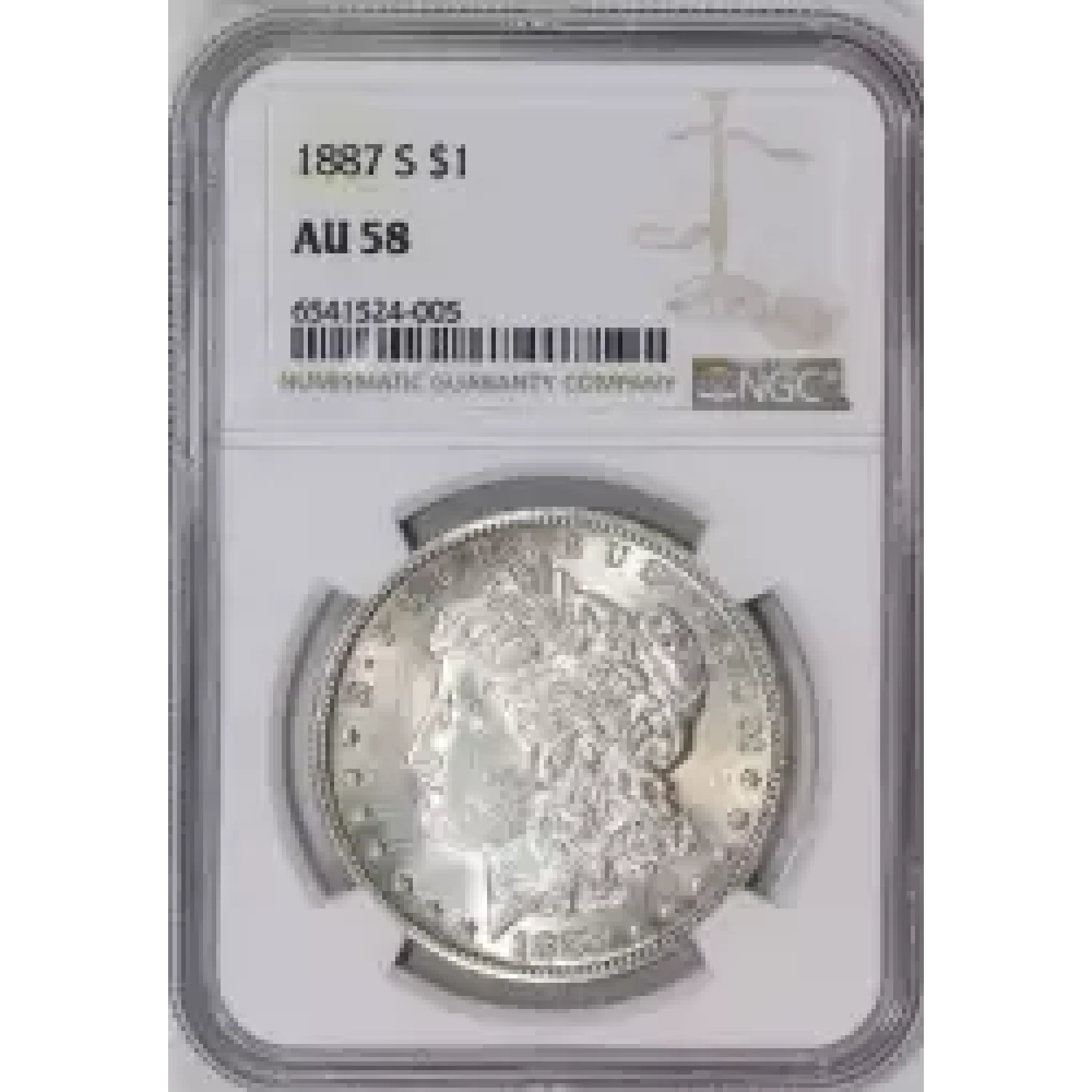 500820 | 1887-S Morgan Silver Dollar NGC AU-58 | NGC | AU-58 | Sold: 07/06/2022 | $165 |