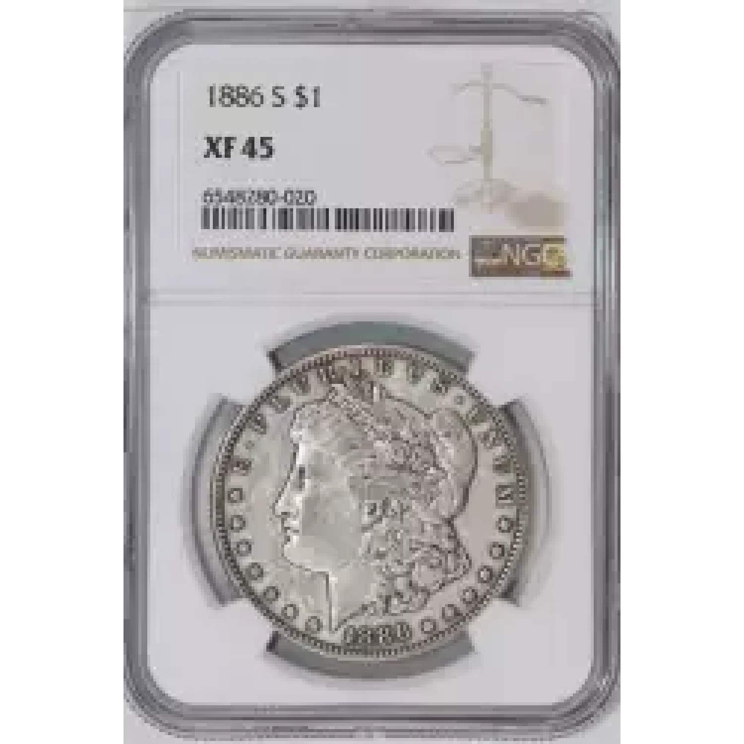500815 | 1886-S Morgan Silver Dollar NGC XF-45 | NGC | XF-45 | Sold: 30/03/2022 | $225 |