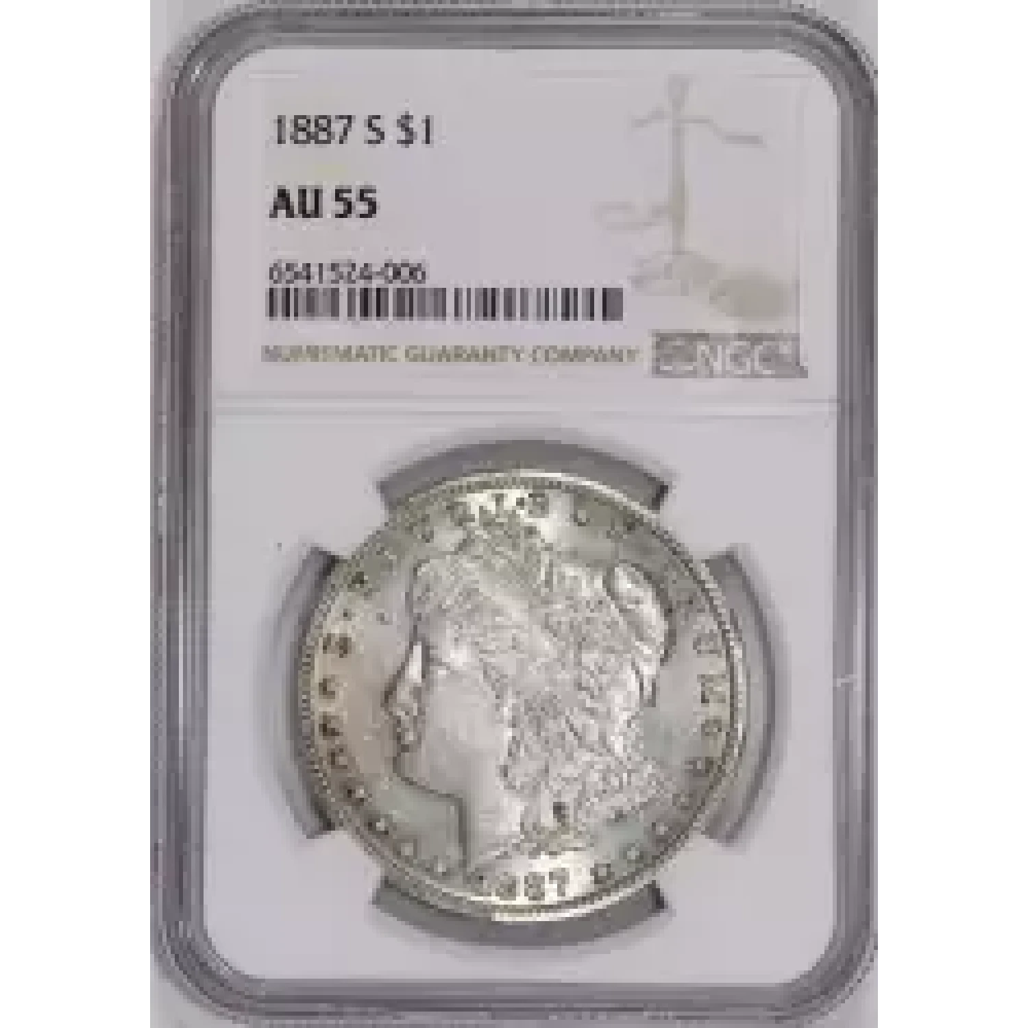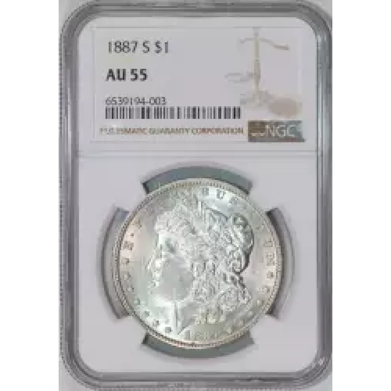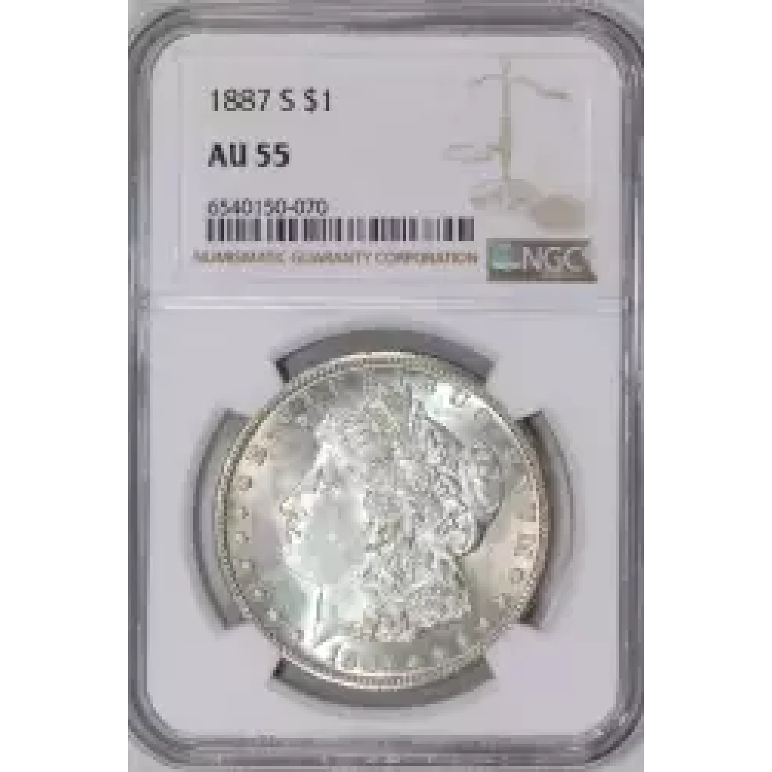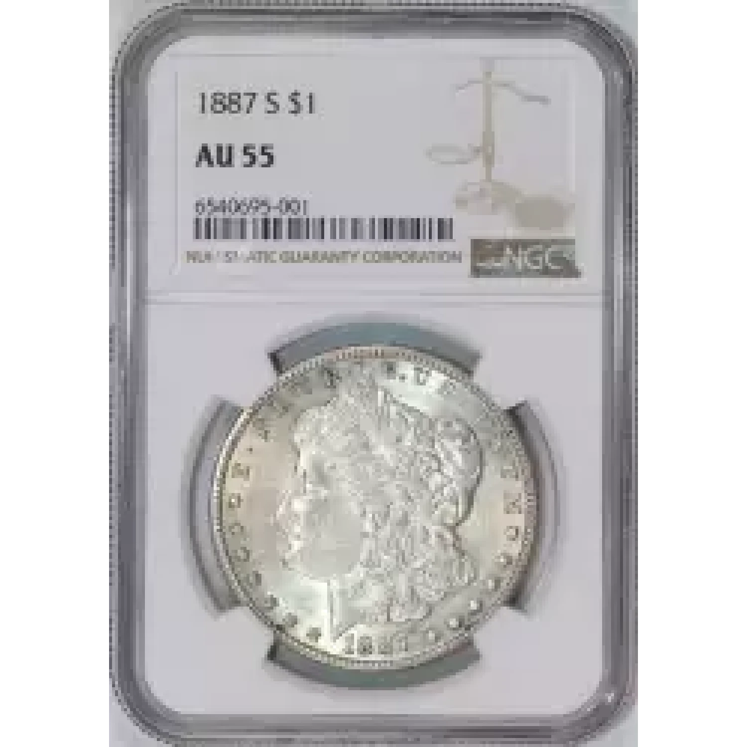 500690 | 1887-S Morgan Silver Dollar NGC AU-55 | NGC | AU-55 | Sold: 11/04/2022 | $115 |