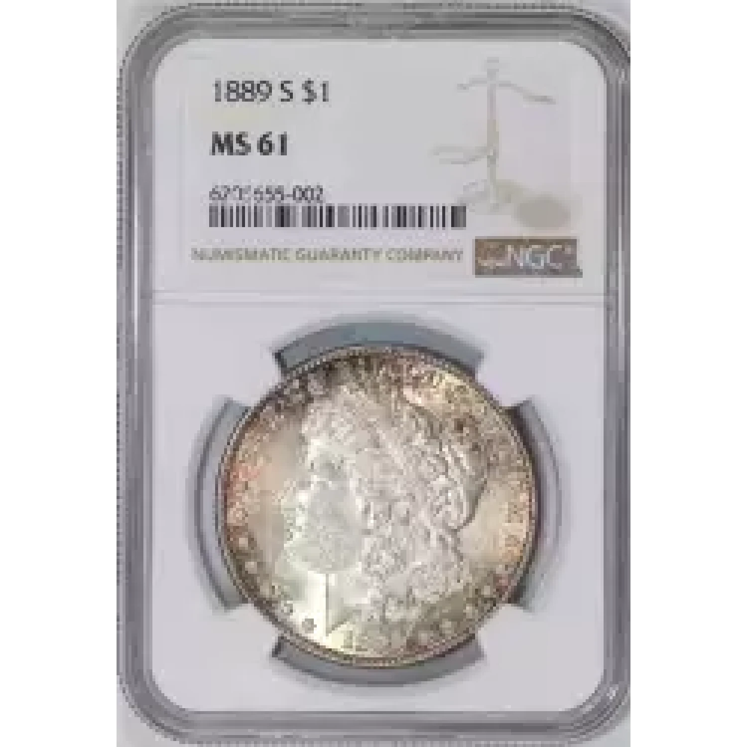 500827 | 1889-S Morgan Silver Dollar NGC MS-61 | NGC | MS-61 | Sold: 02/03/2022 | $375 |