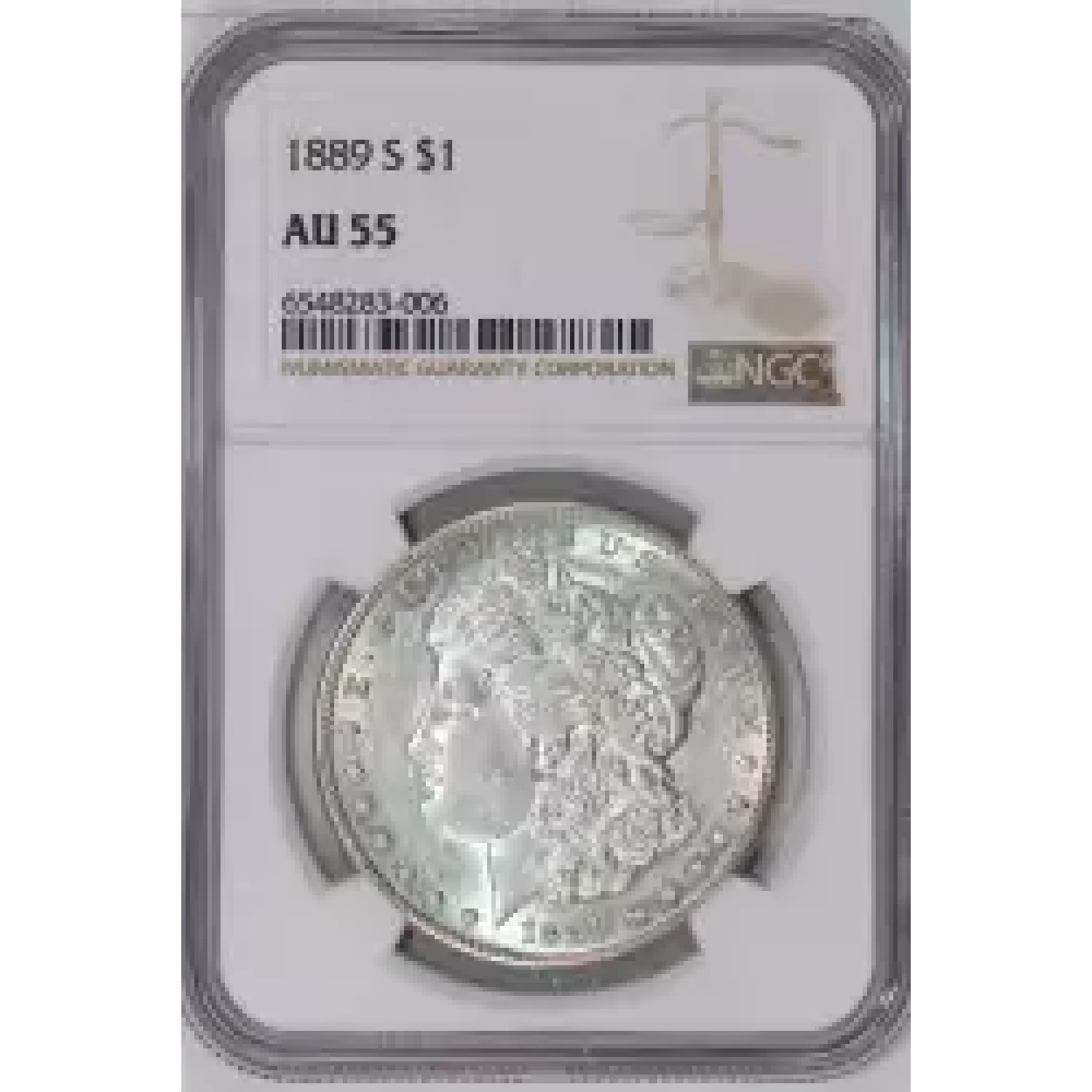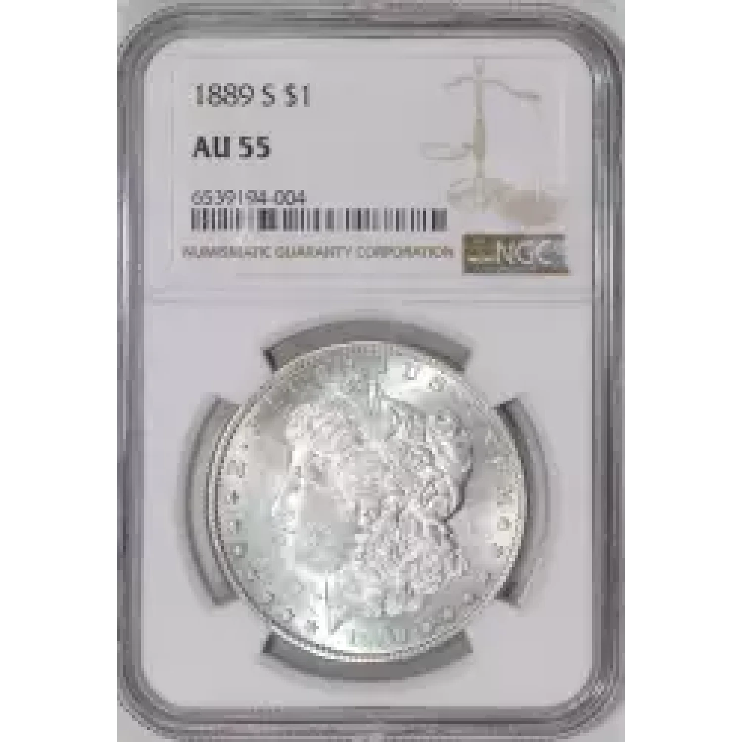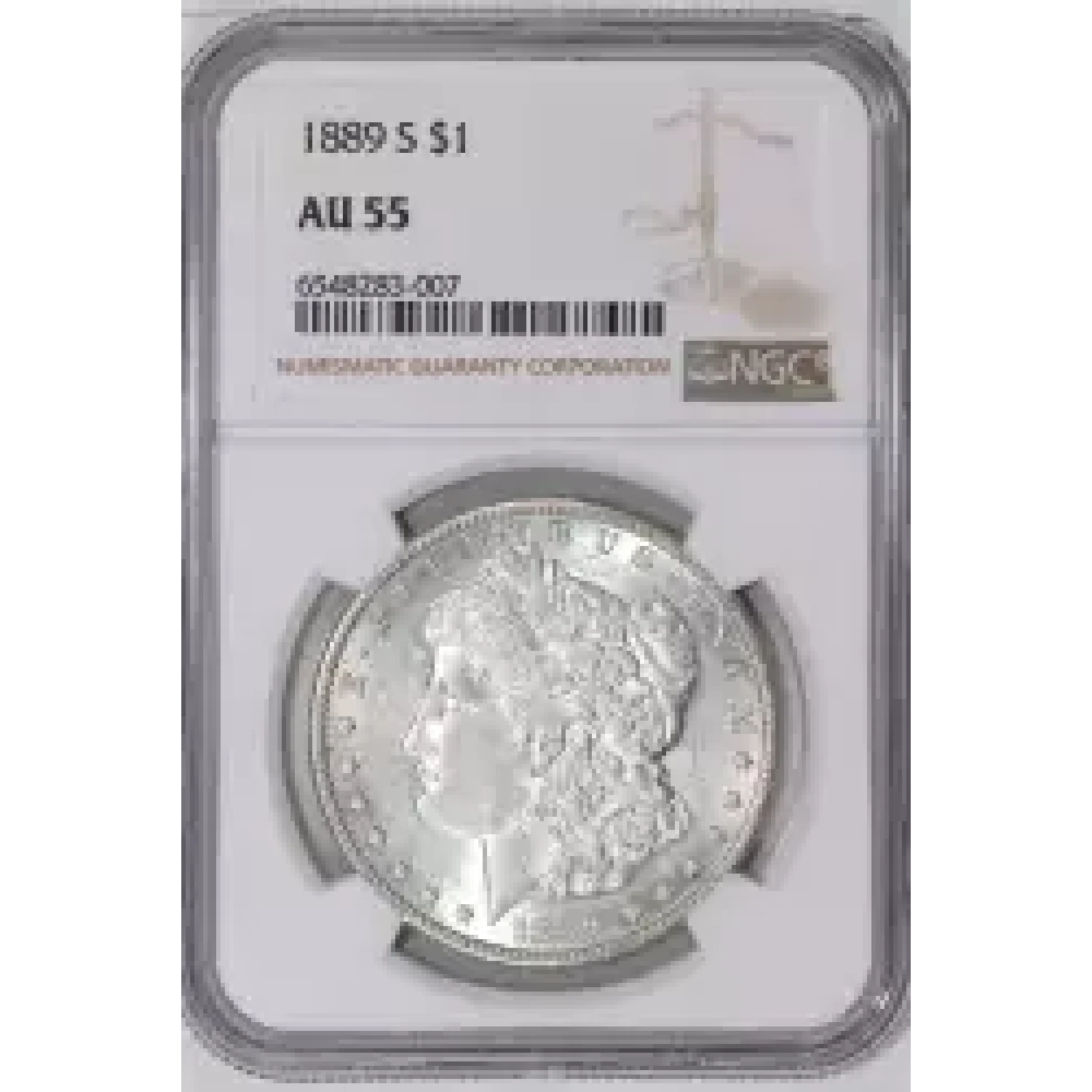 501347 | 1889-S Morgan Silver Dollar NGC AU-55 | NGC | AU-55 | Sold: 01/04/2022 | $190 |