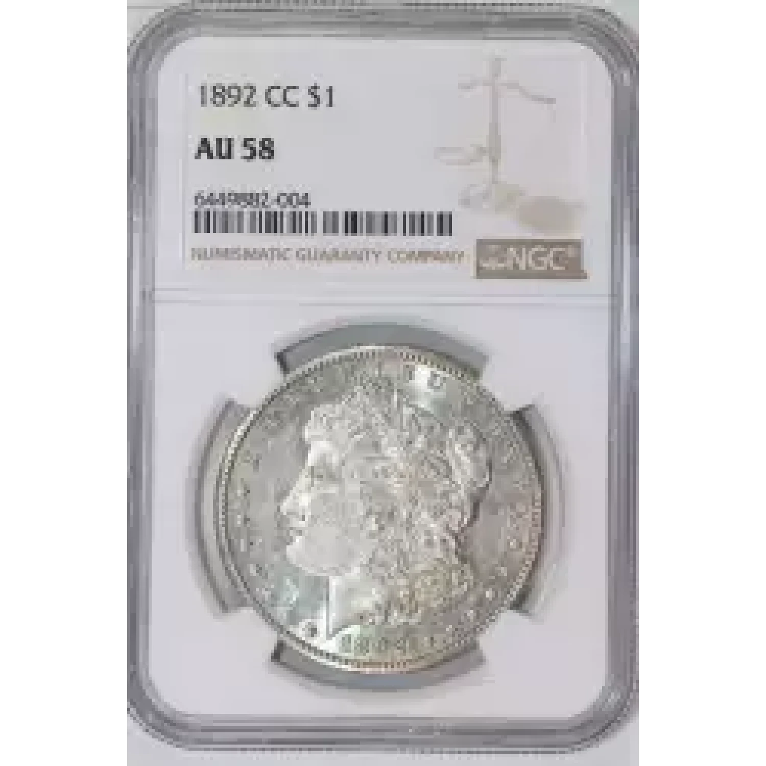 501486 | 1892-CC Morgan Silver Dollar NGC AU-58 | NGC | AU-58 | Sold: 13/05/2022 | $1,650 |