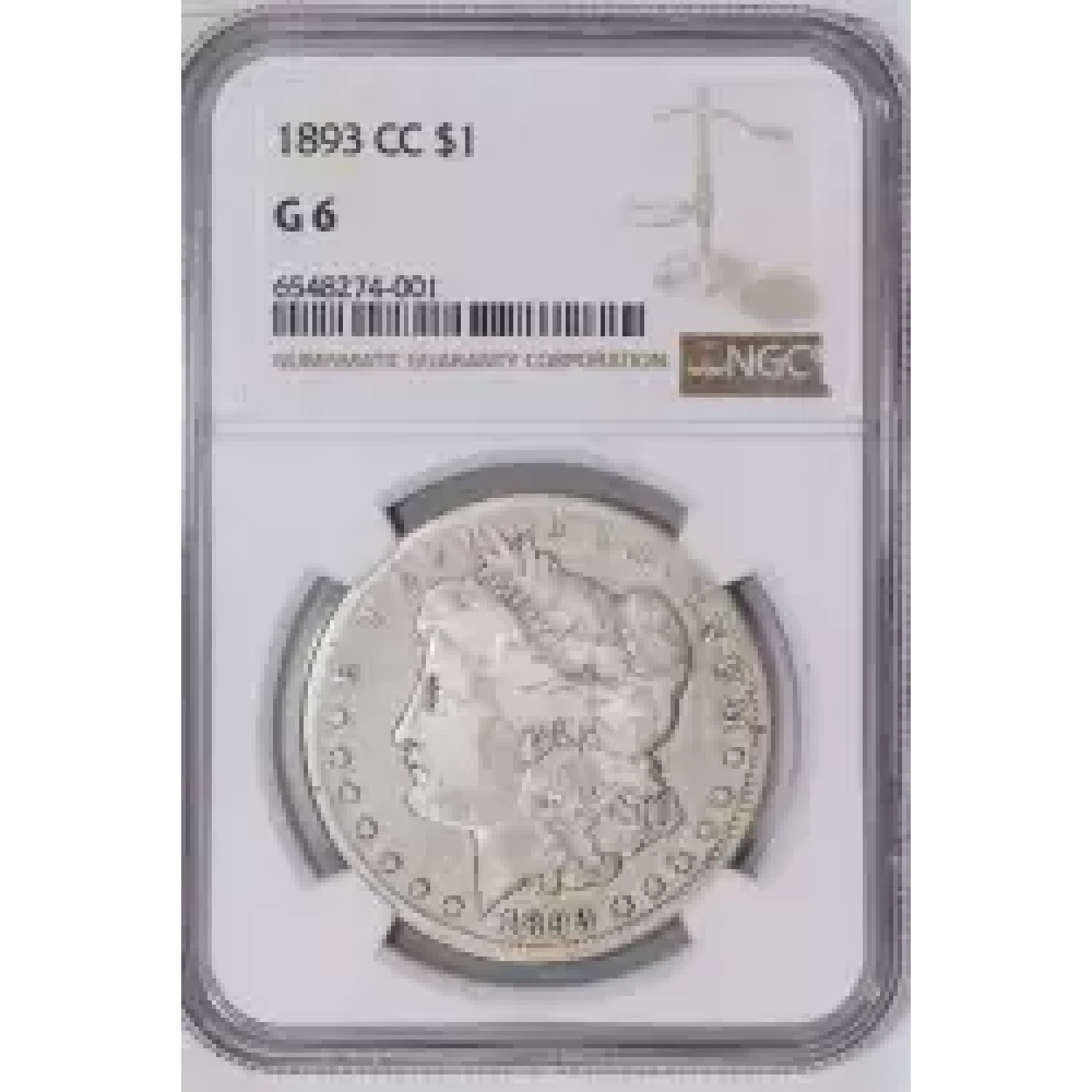 501445 | 1893-CC Morgan Silver Dollar NGC G-6 | NGC | G-6 | Sold: 26/04/2022 | $400 |
