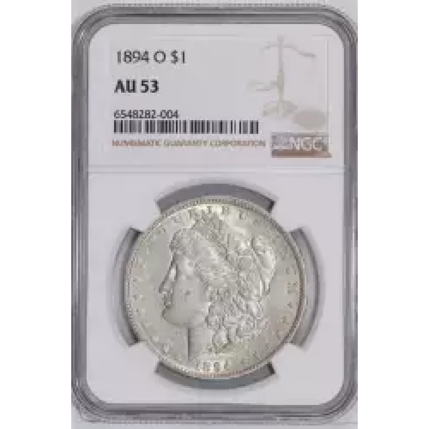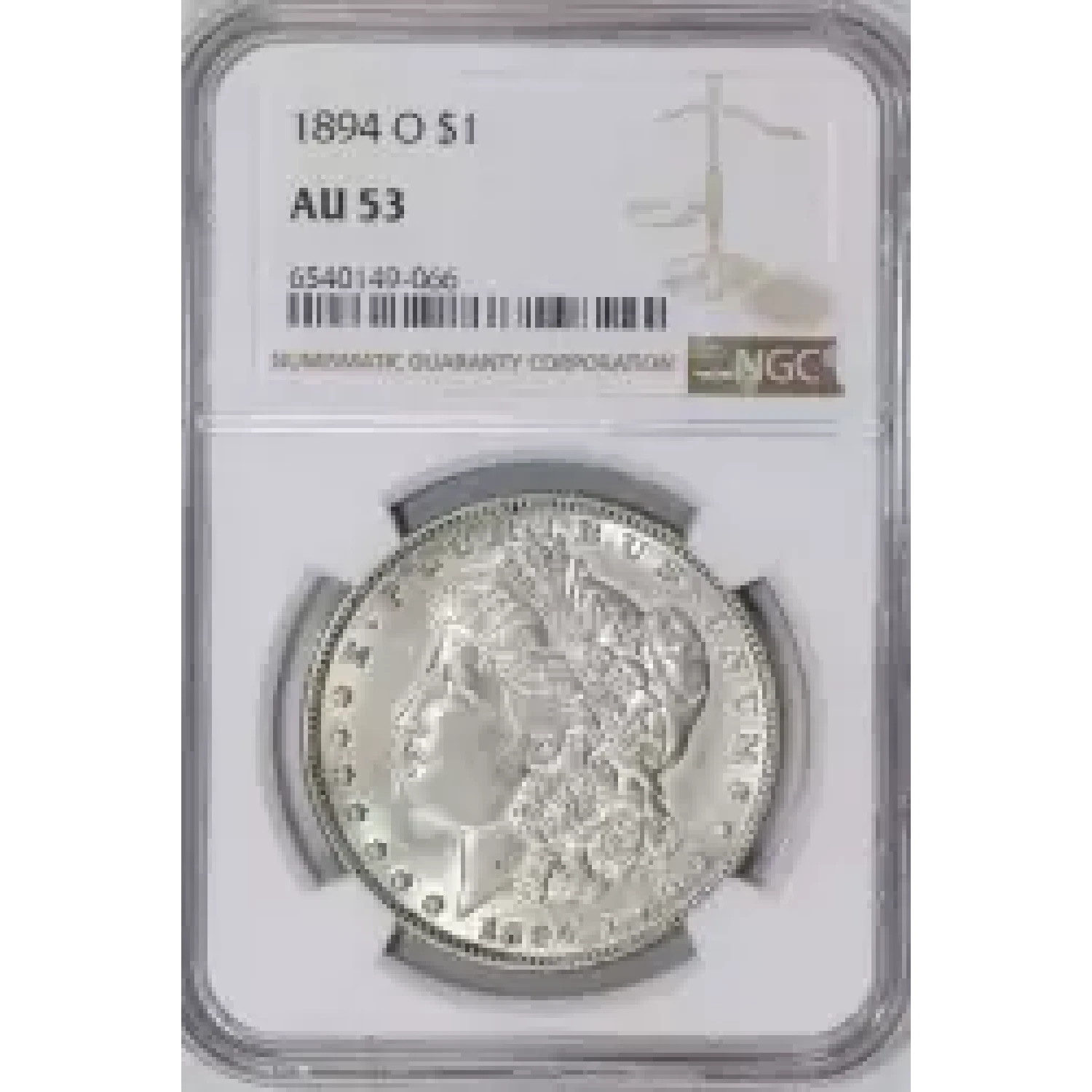 501371 | 1894-O Morgan Silver Dollar NGC AU-53 | NGC | AU-53 | Sold: 07/06/2022 | $450 |