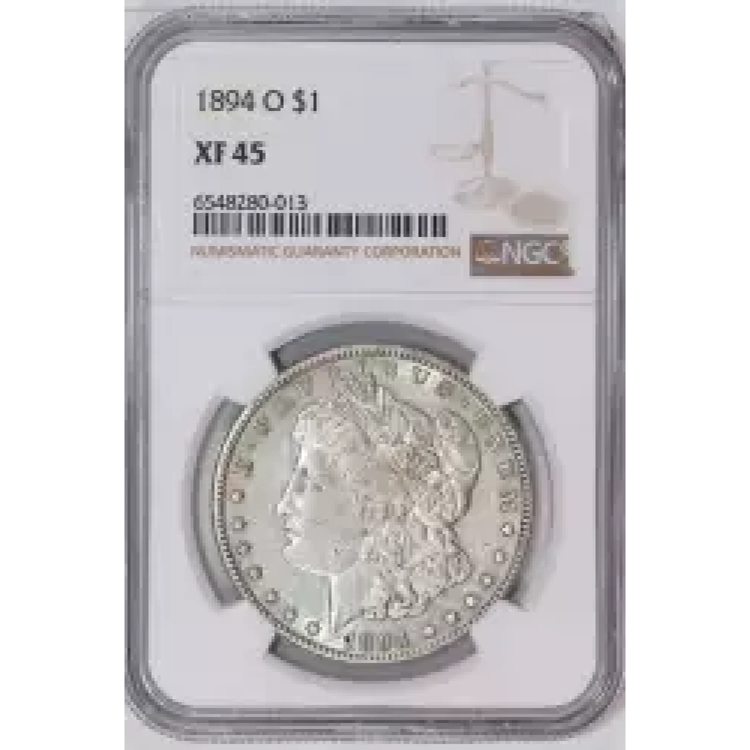 501370 | 1894-O Morgan Silver Dollar NGC XF-45 | NGC | XF-45 | Sold: 07/06/2022 | $225 |