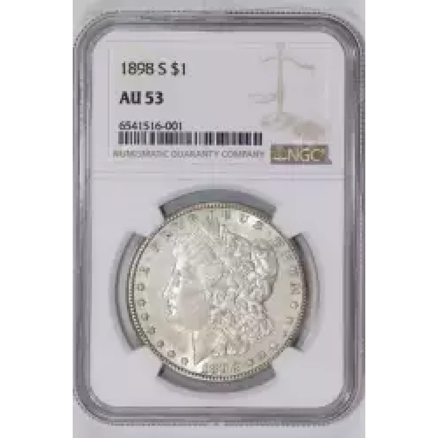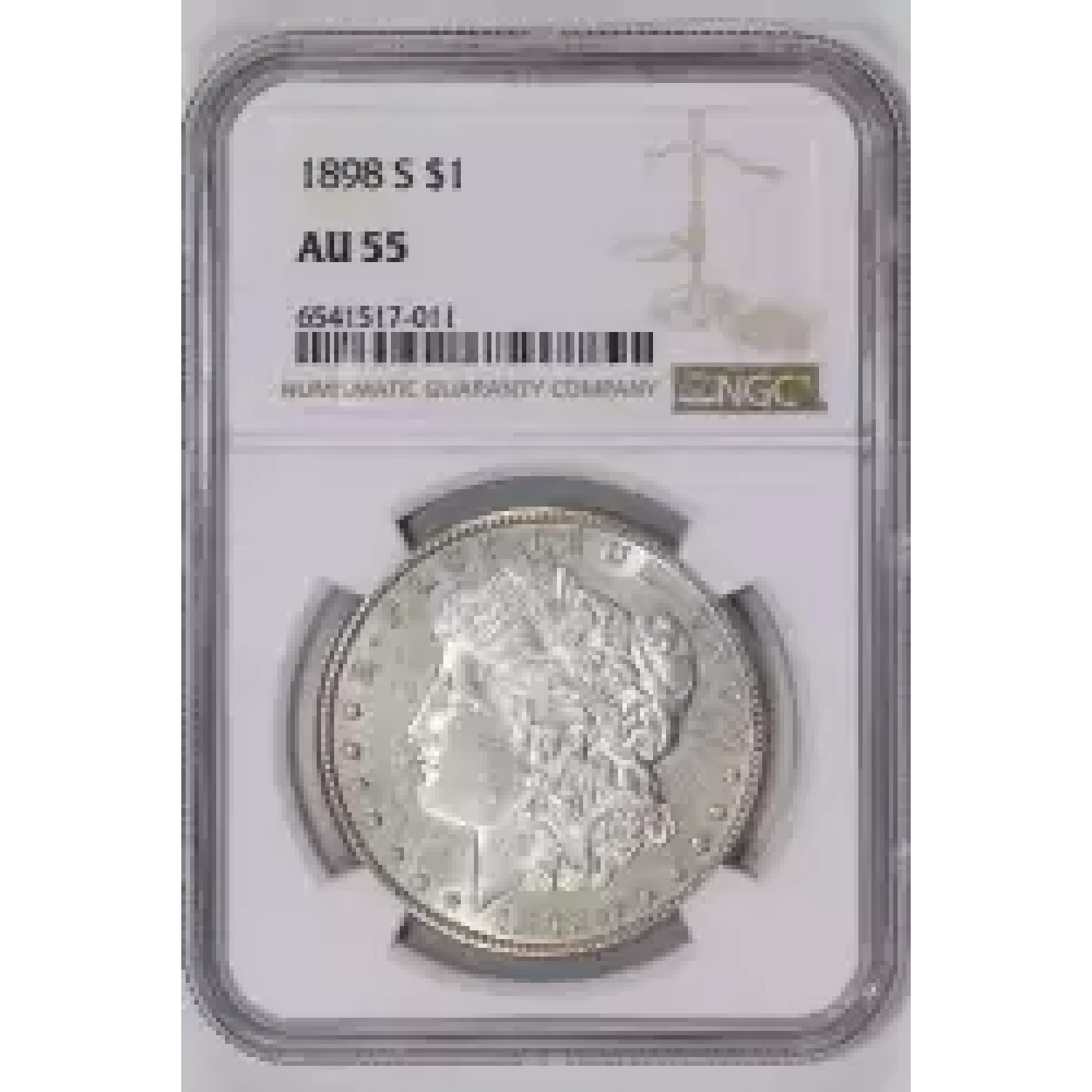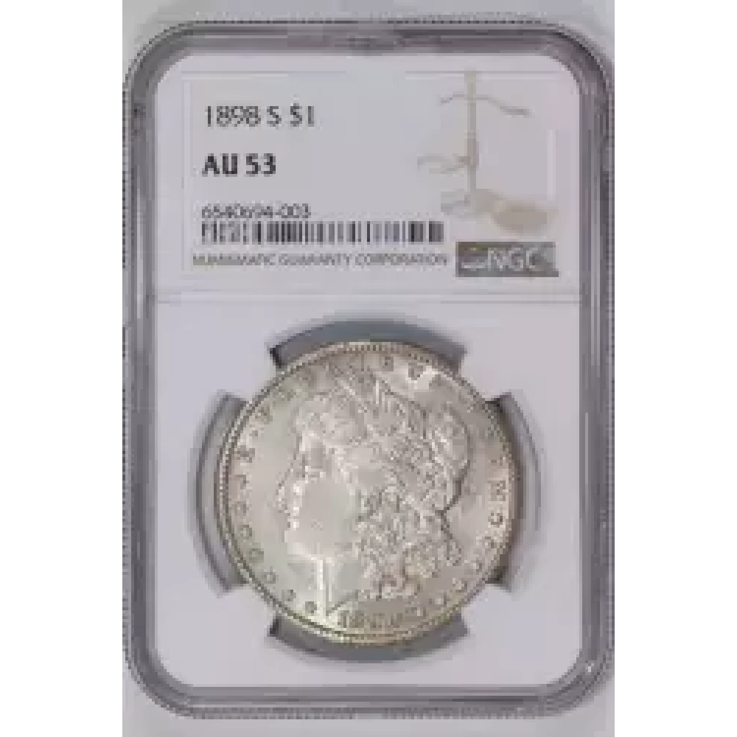501491 | 1898-S Morgan Silver Dollar NGC AU-58 | NGC | AU-58 | Sold: 07/06/2022 | $425 |