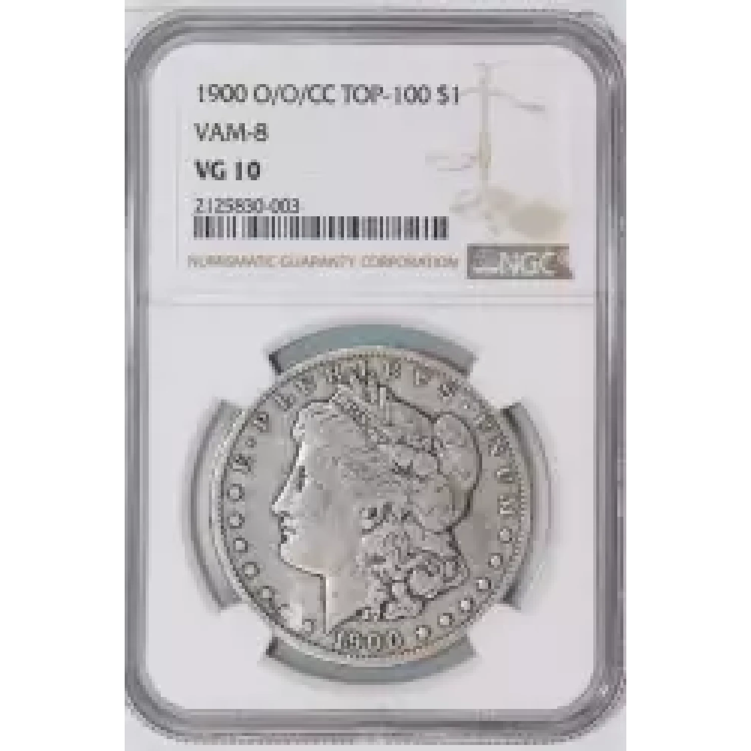501439 | 1900-O Morgan Silver Dollar NGC VG-10 O/O/CC VAM-8 | NGC | VG-10 | Sold: 11/05/2022 | $165 |