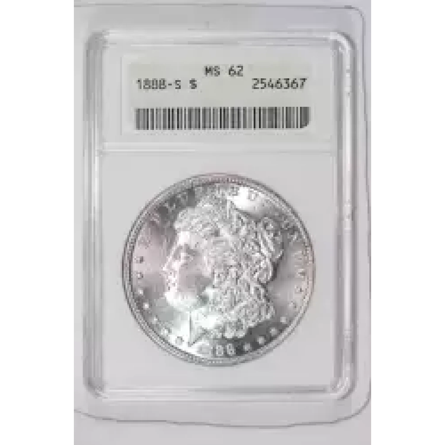 501509 | 1888-S Morgan Silver Dollar ANACS MS-62 | ANACS | MS-62 | Sold: 21/04/2022 | $550 |