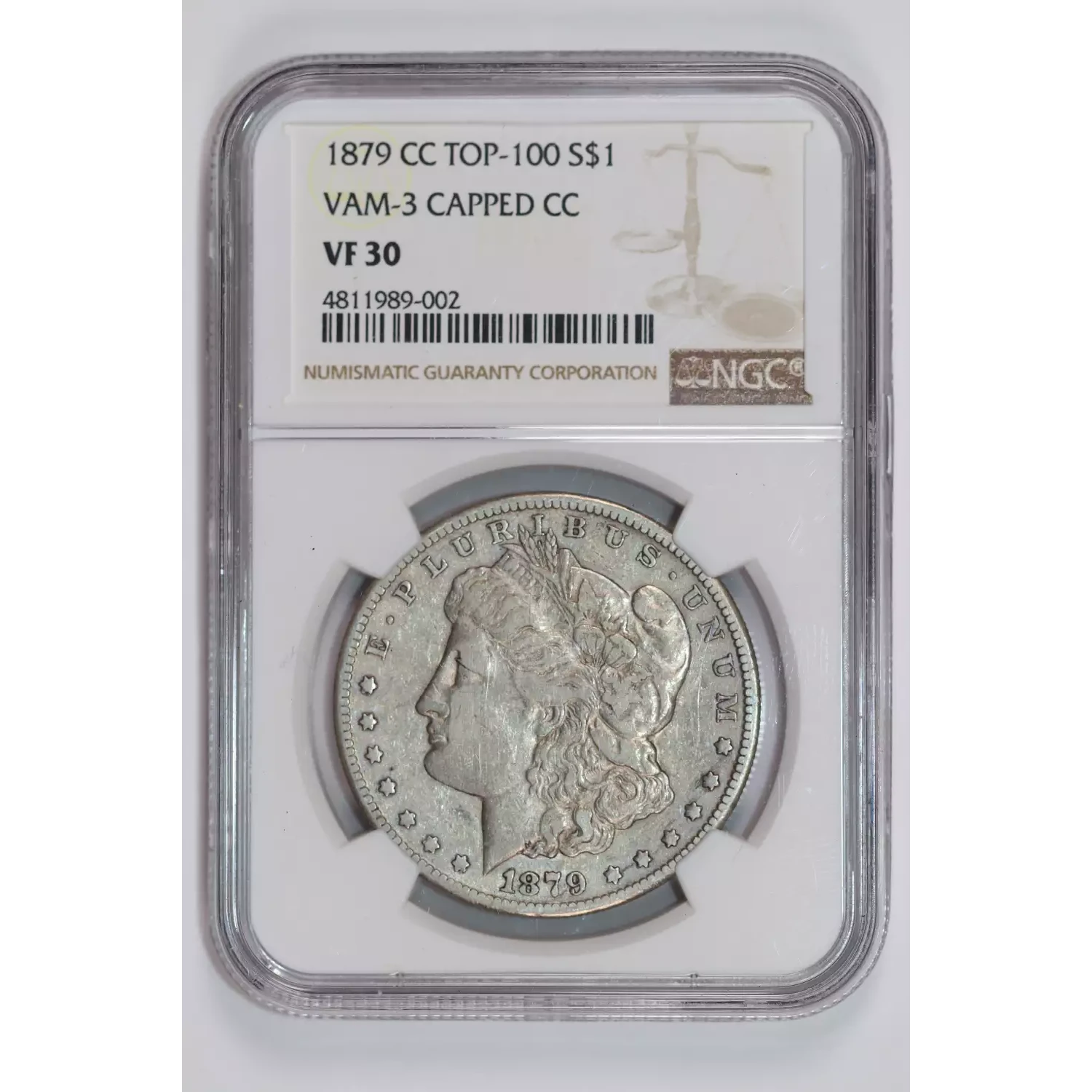 535129 | 1879-C Morgan Silver Dollar NGC VF-30 CC VAM-3 CAPPED CC | NGC | VF-30 | Sold: 09/10/2025 | $975 |