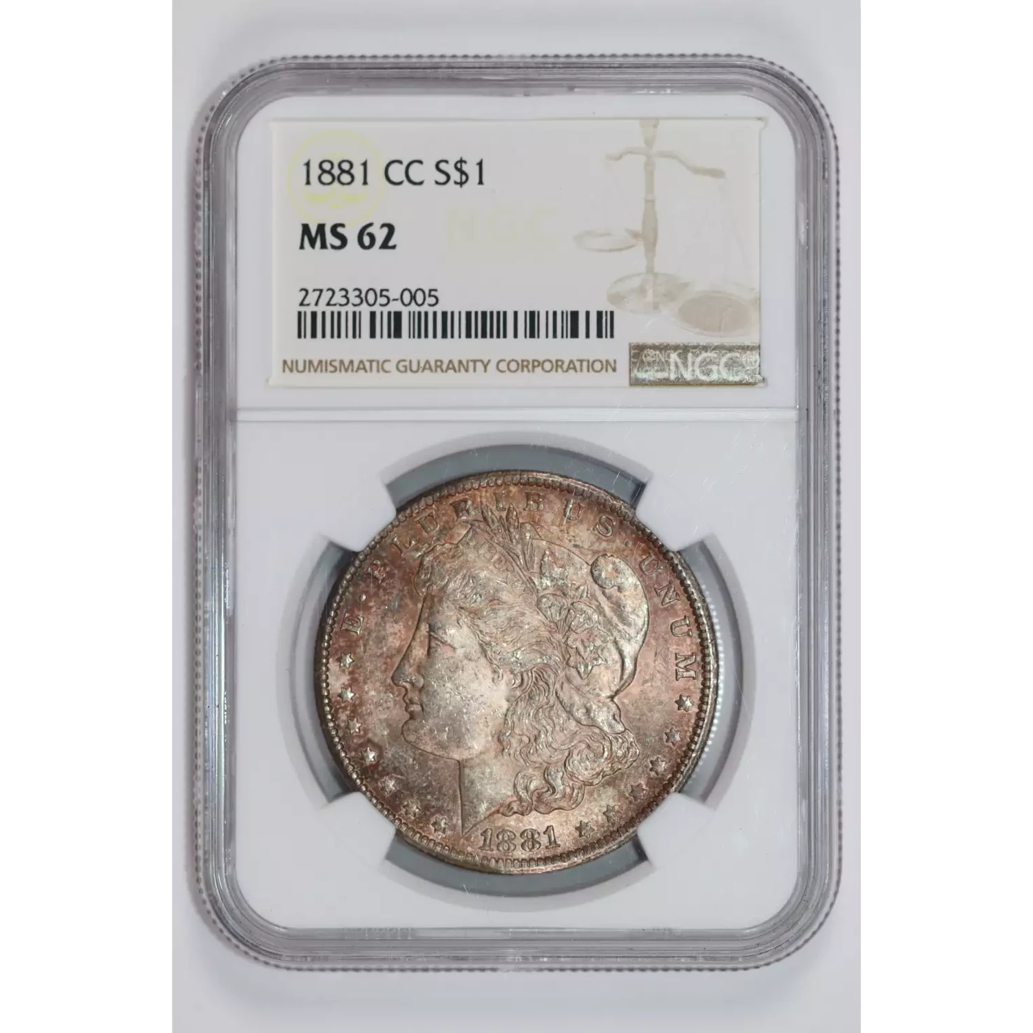 535125 | 1881-CC Morgan Silver Dollar NGC MS-62 | NGC | MS-62 | Sold: 09/10/2025 | $725 |