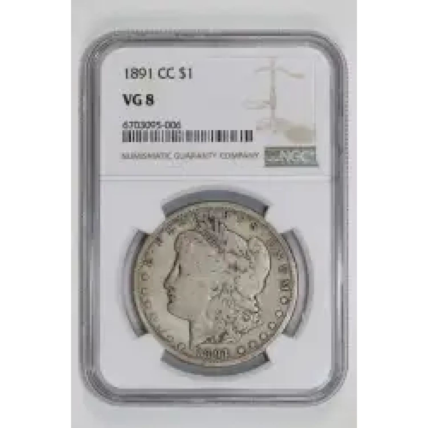 525219 | 1891-CC Morgan Silver Dollar NGC VG-8 | NGC | VG-8 | Sold: 31/03/2025 | $195 |