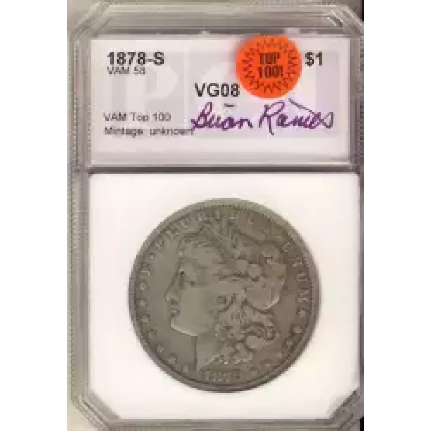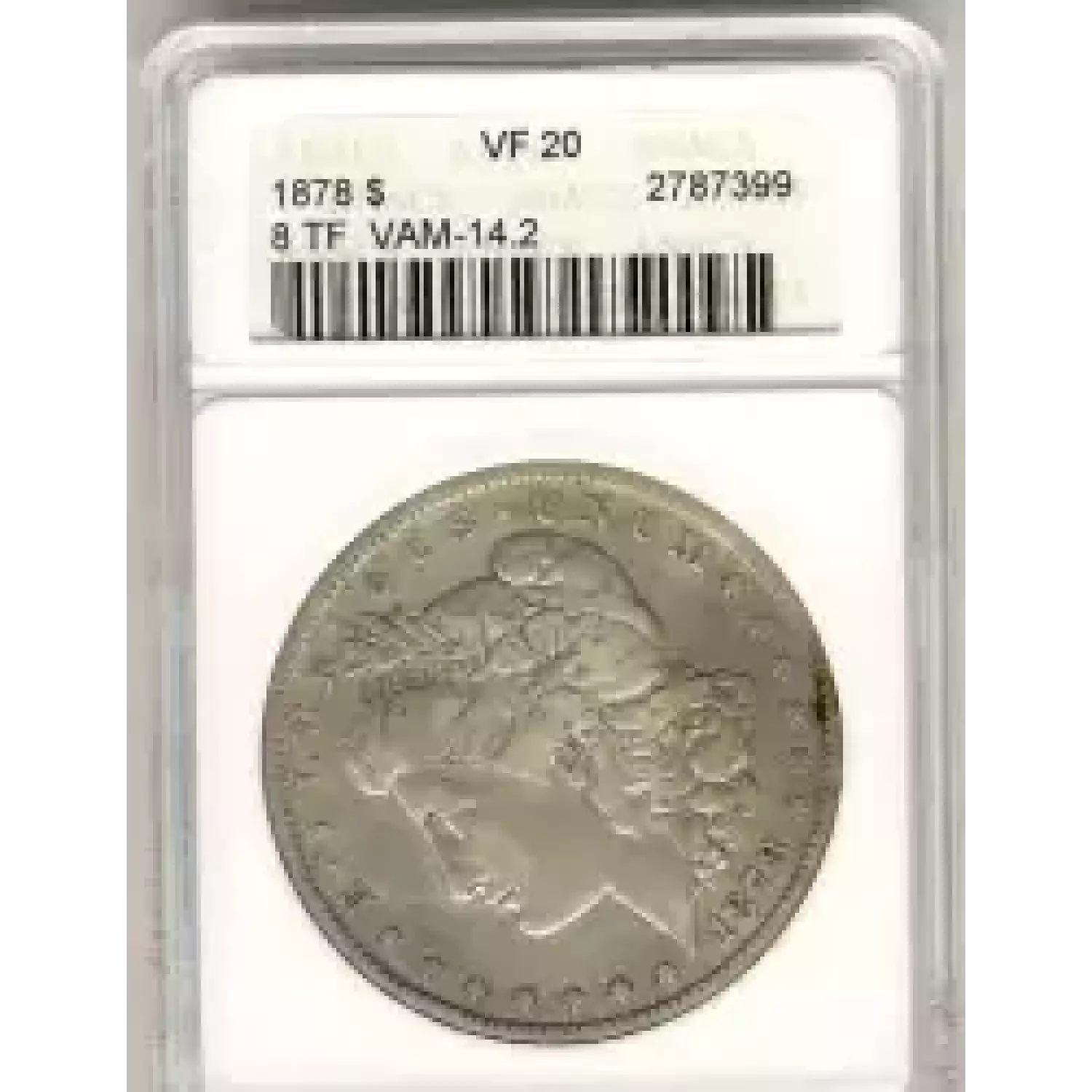 503945 | 1878-VF-20 Morgan Silver Dollar ANACS VF-20 | ANACS | VF-20 | Sold: 10/02/2008 | $40 |
