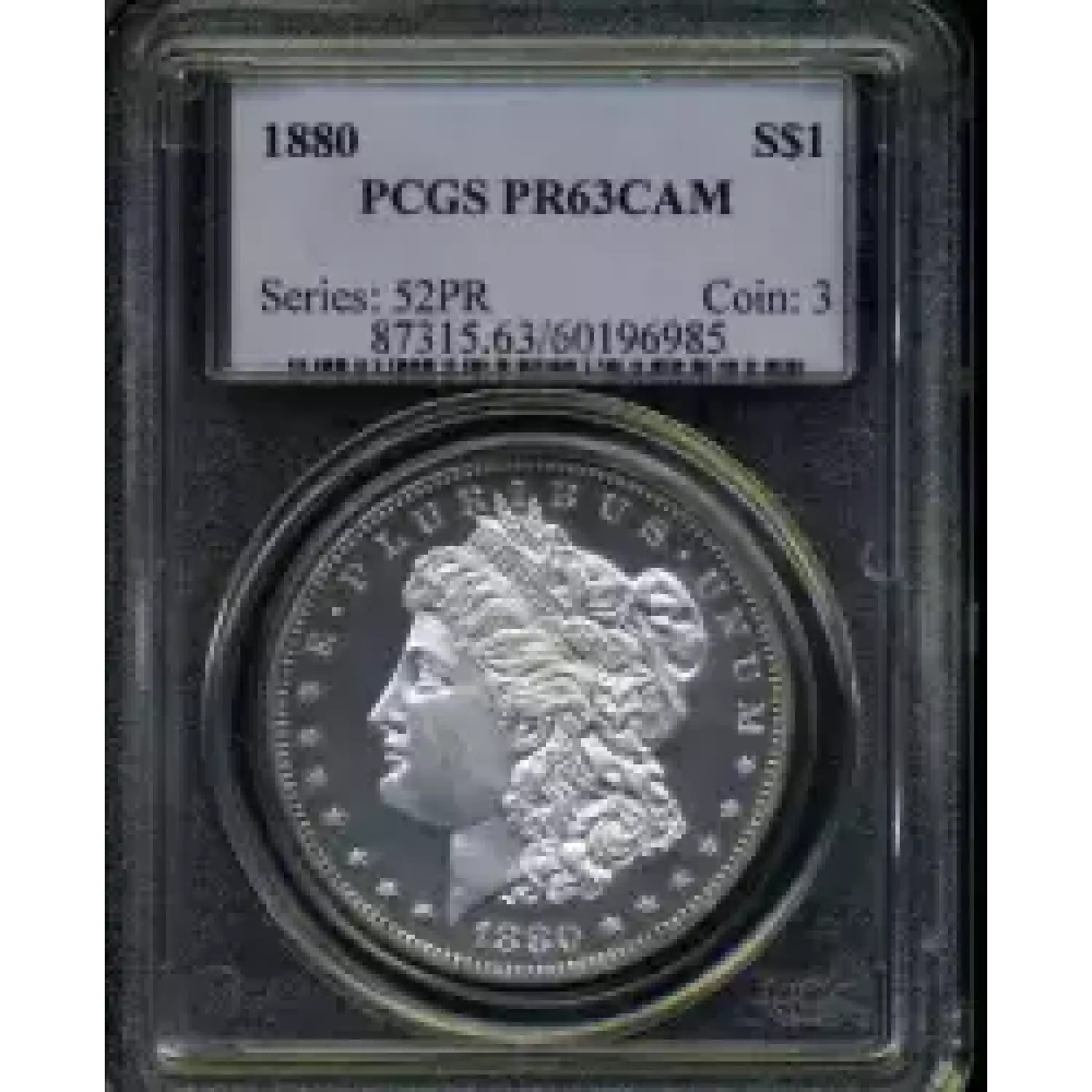 504004 | 1880-PR-63 Morgan Silver Dollar PCGS PR-63 CAM | PCGS | PR-63 | Sold: 04/10/2008 | $3,300 |