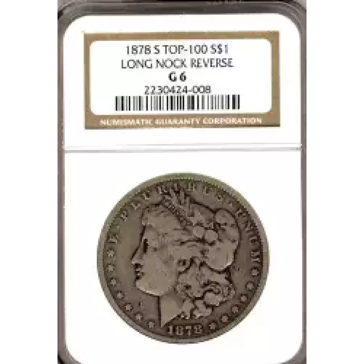 504019 | 1878-G-6 Morgan Silver Dollar NGC G-6 | NGC | G-6 | Sold: 10/02/2008 | $200 |