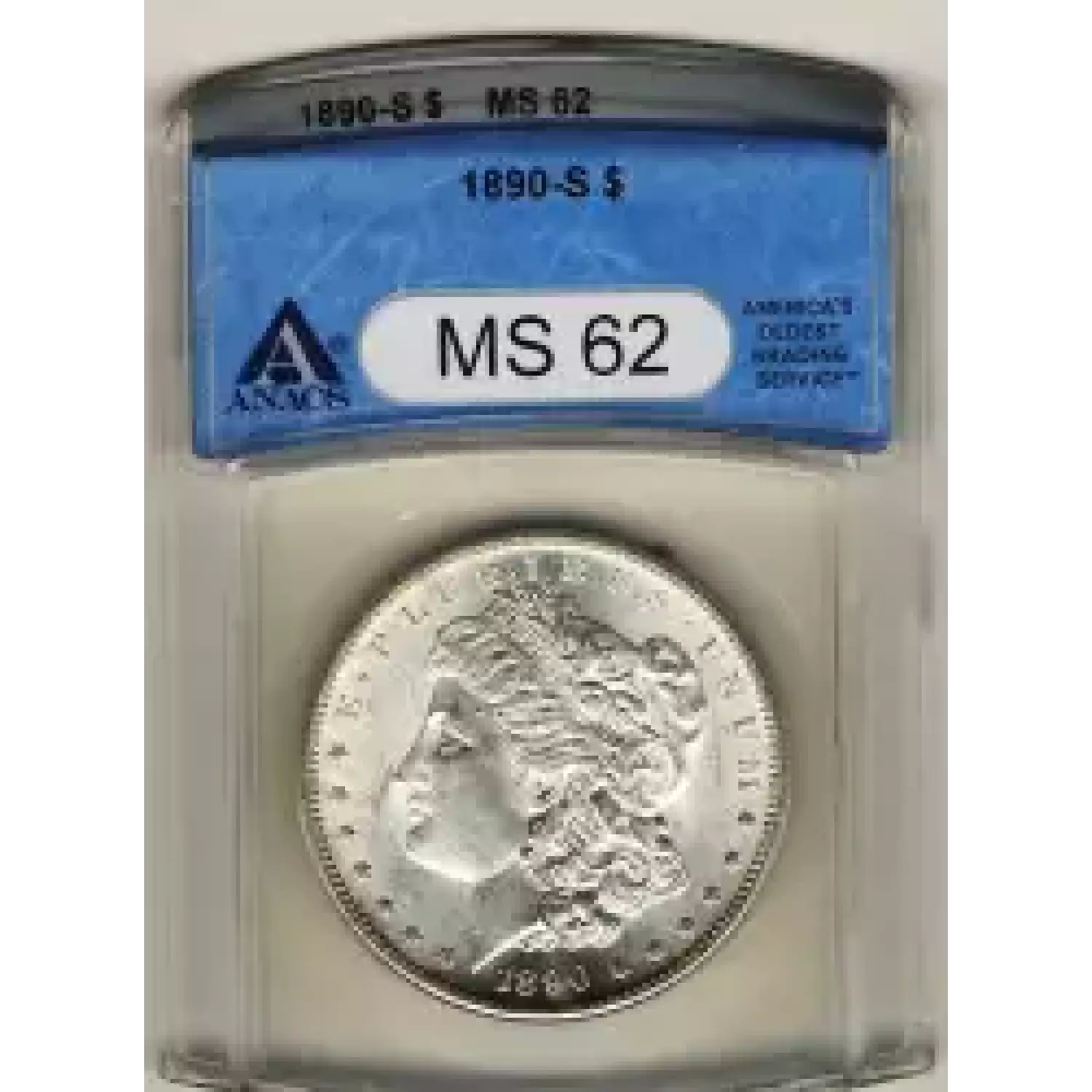 504033 | 1890-MS-62 Morgan Silver Dollar ANACS MS-62 | ANACS | MS-62 | Sold: 20/05/2007 | $65 |