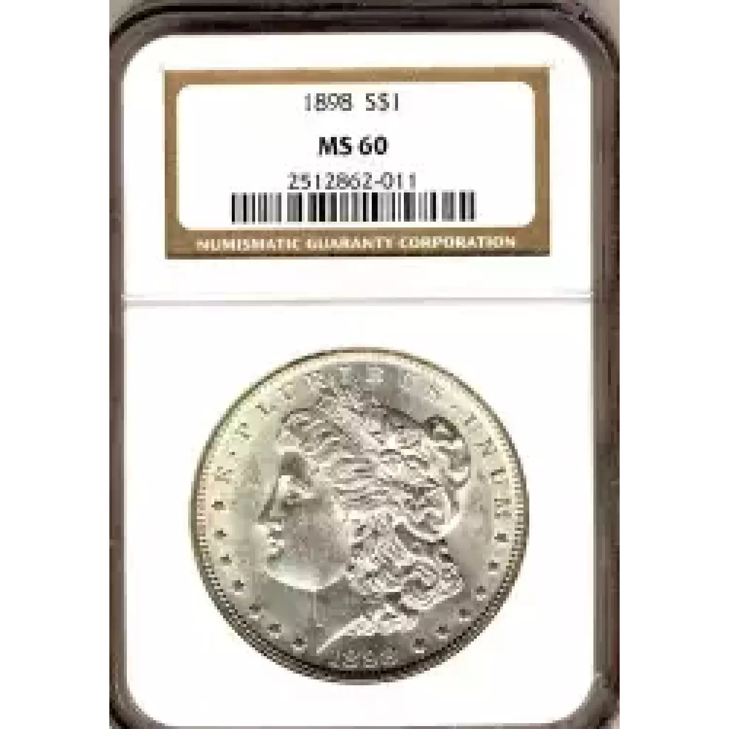 504034 | 1898-MS-60 Morgan Silver Dollar NGC MS-60 | NGC | MS-60 | Sold: 26/03/2007 | $35 |