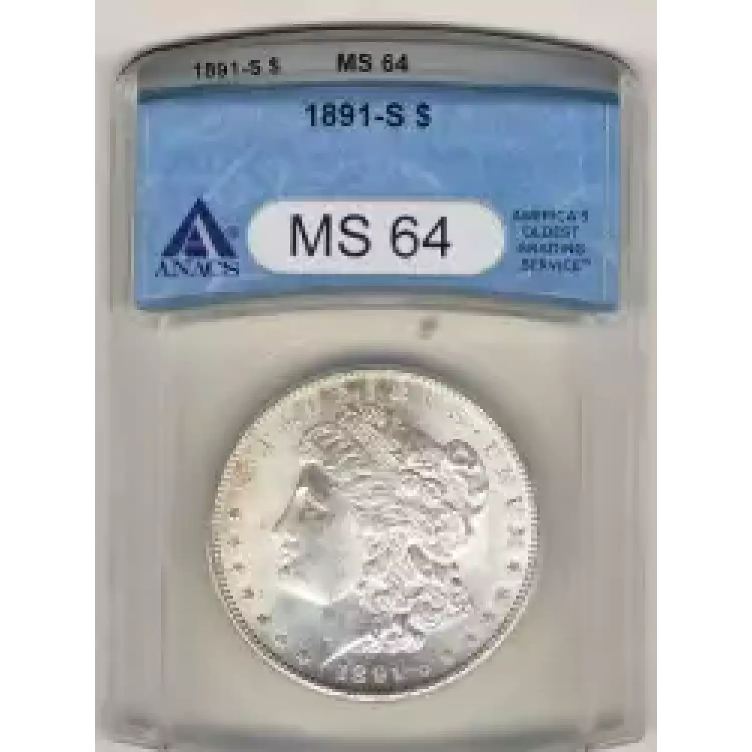 504044 | 1891-MS-64 Morgan Silver Dollar ANACS MS-64 | ANACS | MS-64 | Sold: 22/05/2009 | $225 |