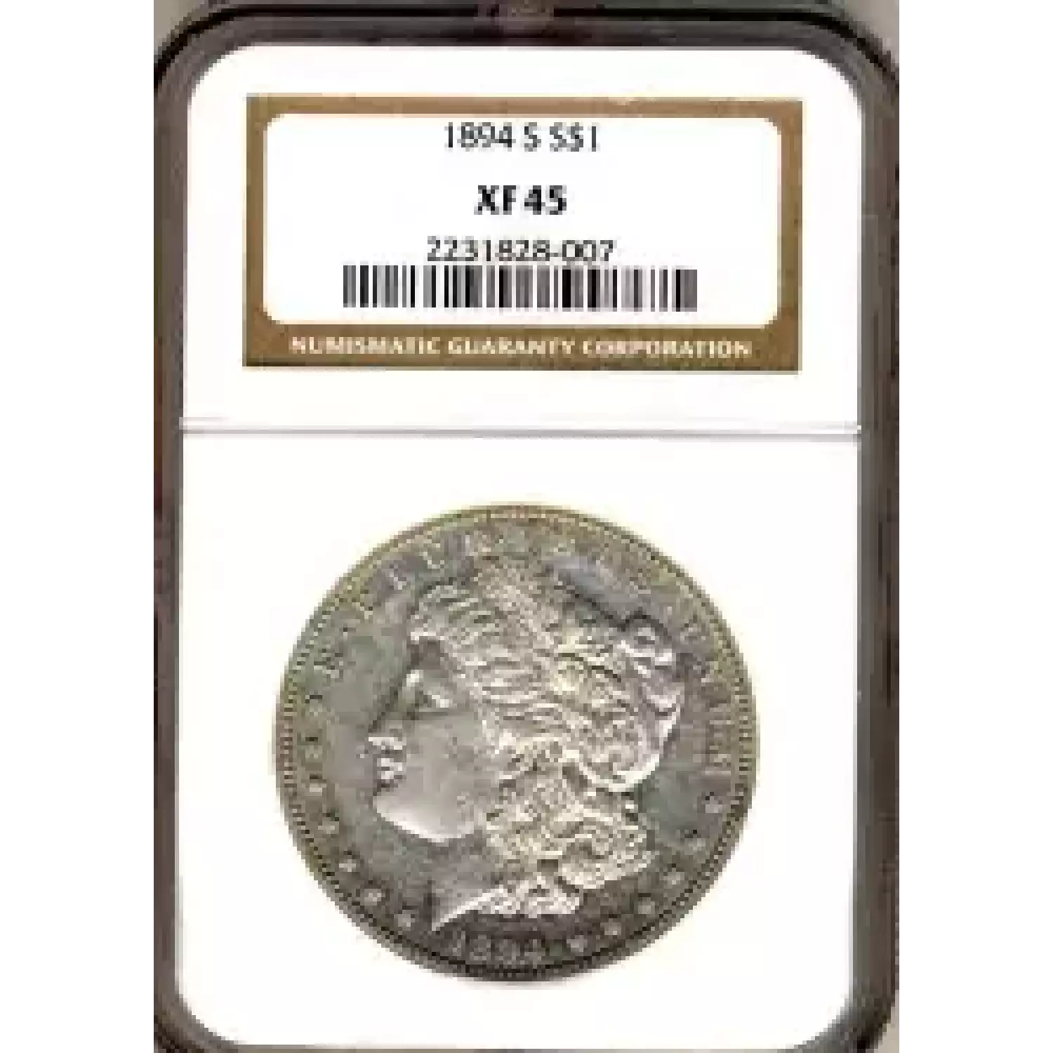 504088 | 1894-XF-45 Morgan Silver Dollar NGC XF-45 | NGC | XF-45 | Sold: 28/05/2007 | $190 |
