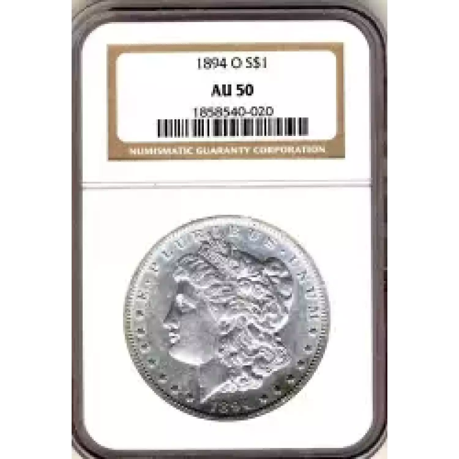 504089 | 1894-AU-50 Morgan Silver Dollar NGC AU-50 | NGC | AU-50 | Sold: 18/06/2007 | $265 |