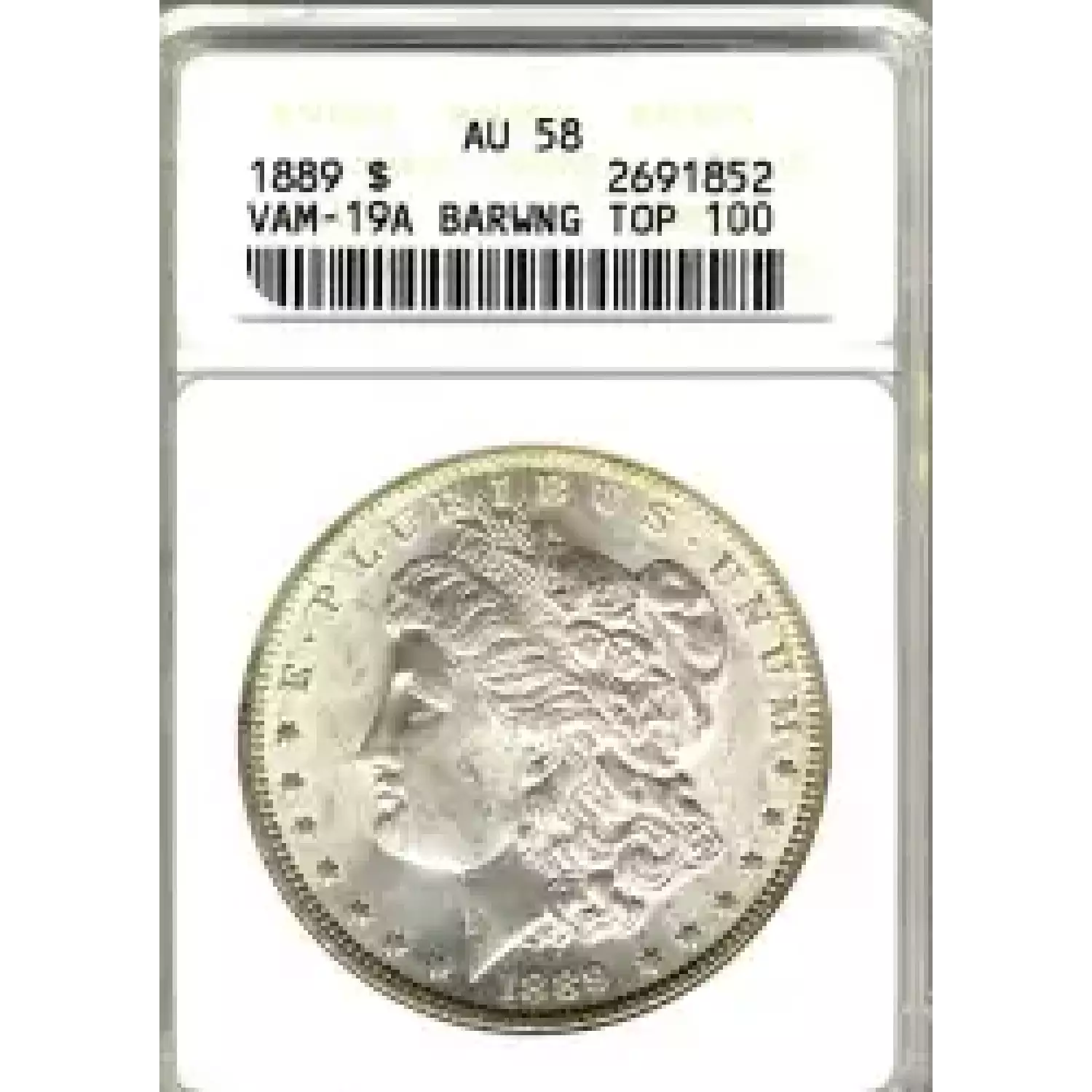 504091 | 1889-AU-58 Morgan Silver Dollar ANACS AU-58 | ANACS | AU-58 | Sold: 02/08/2010 | $125 |