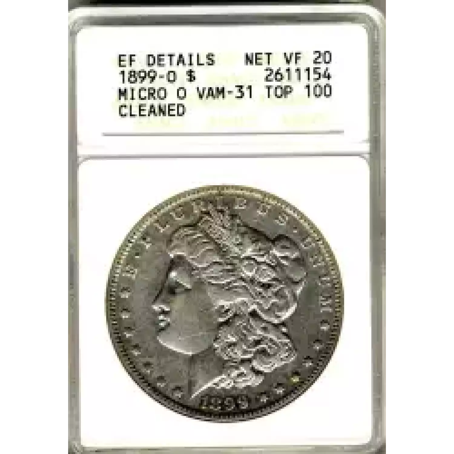 504099 | 1899-EF Details Morgan Silver Dollar ANACS XF Details Net VF20 Cleaned | ANACS | XF Details | Sold: 19/12/2011 | $30 |