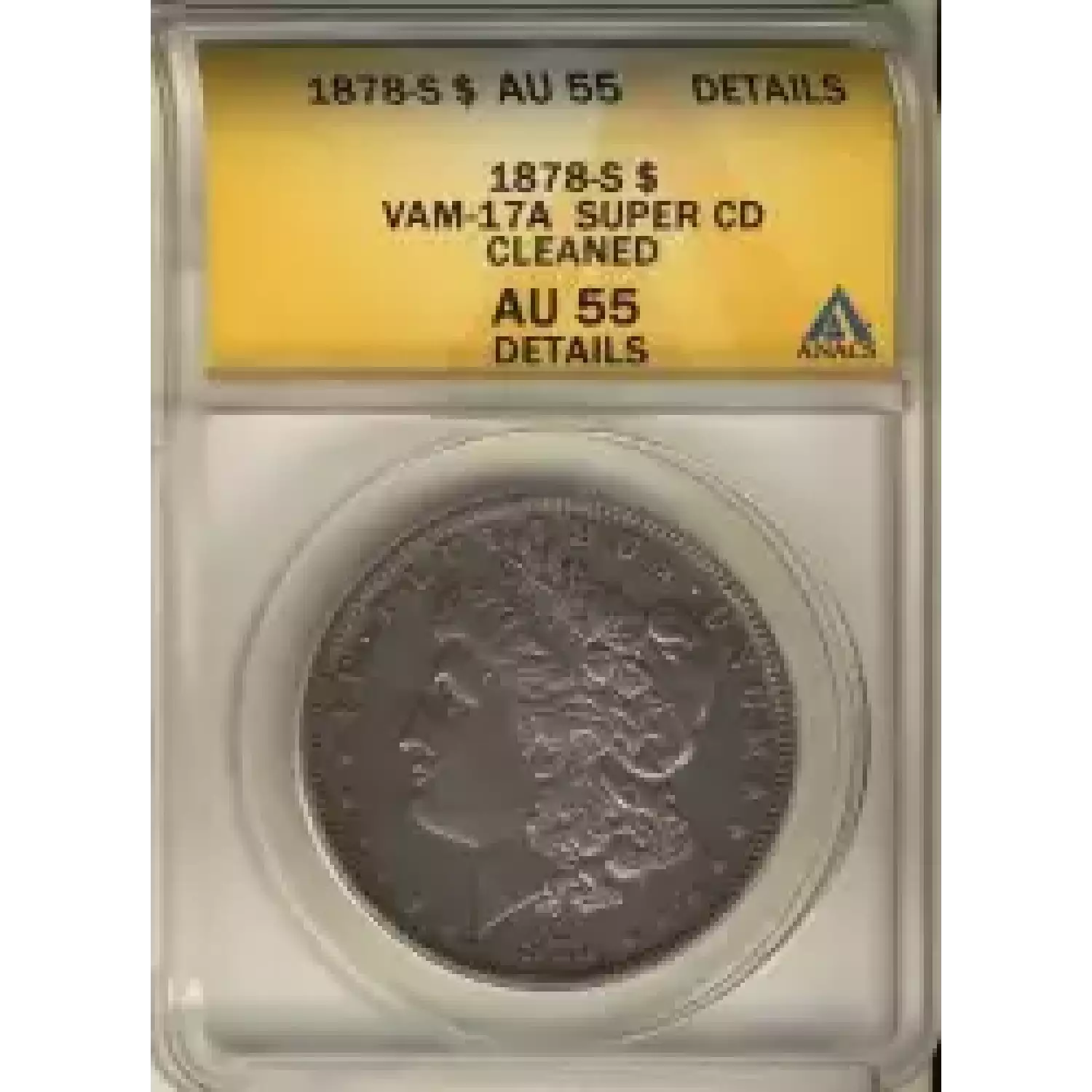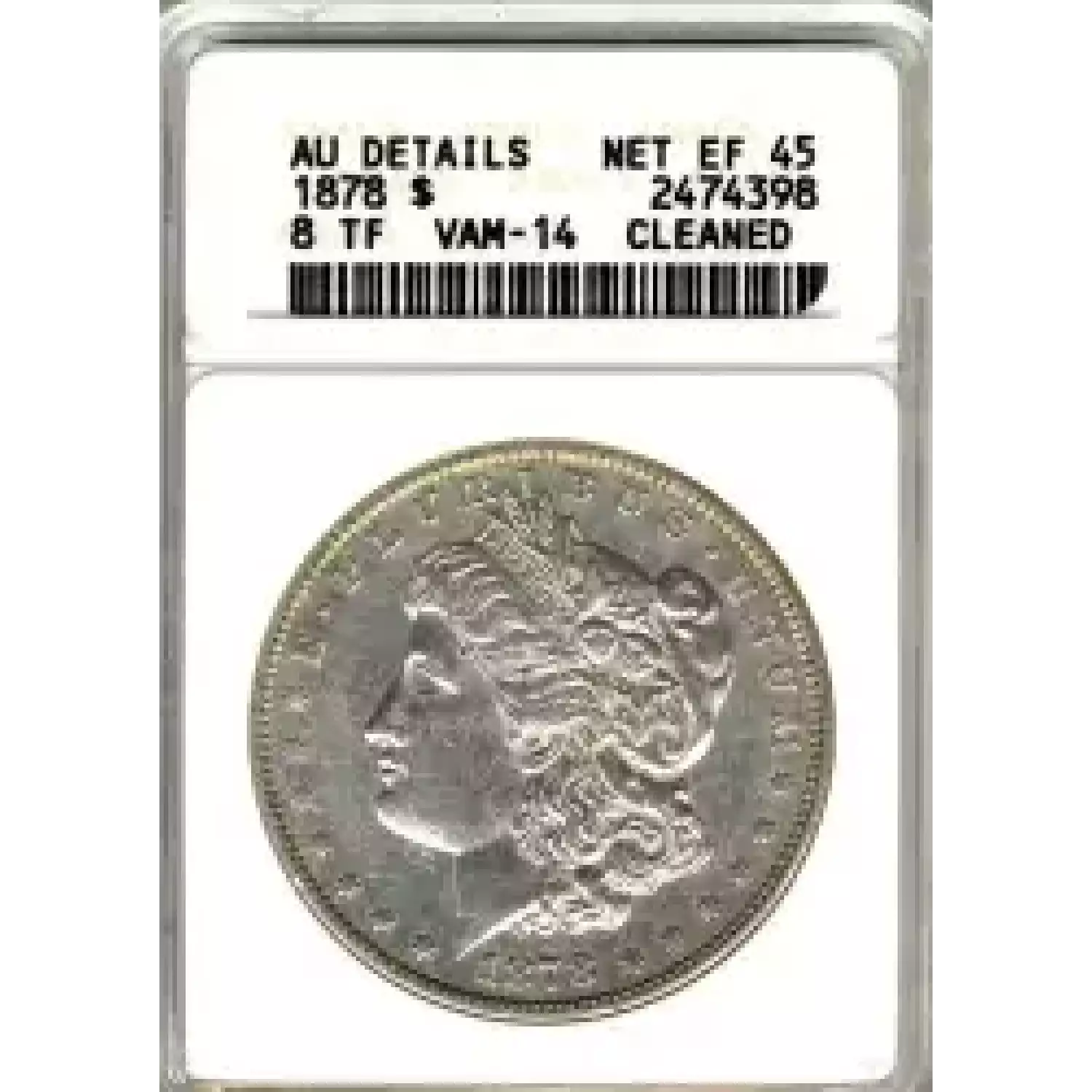 504119 | 1878-AU Details Morgan Silver Dollar ANACS AU Details Cleaned Net EF45 | ANACS | AU Details | Sold: 27/09/2008 | $55 |