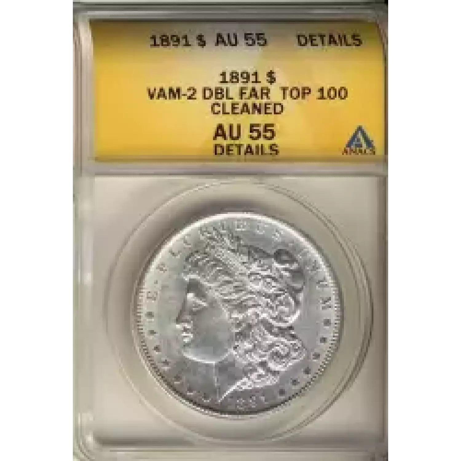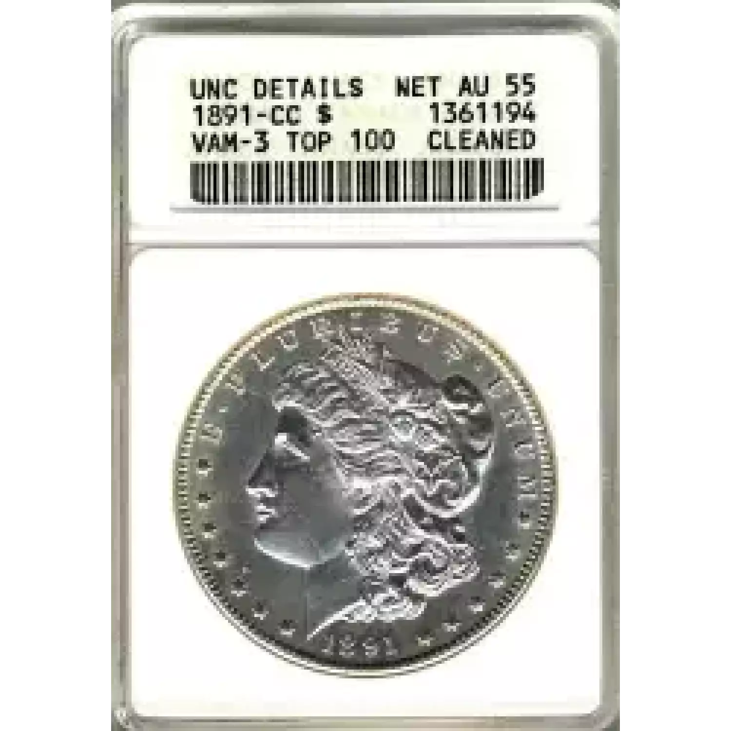 504120 | 1891-UNC Details Morgan Silver Dollar ANACS UNC Details Net AU-55 Cleaned | ANACS | UNC Details | Sold: 18/06/2007 | $225 |