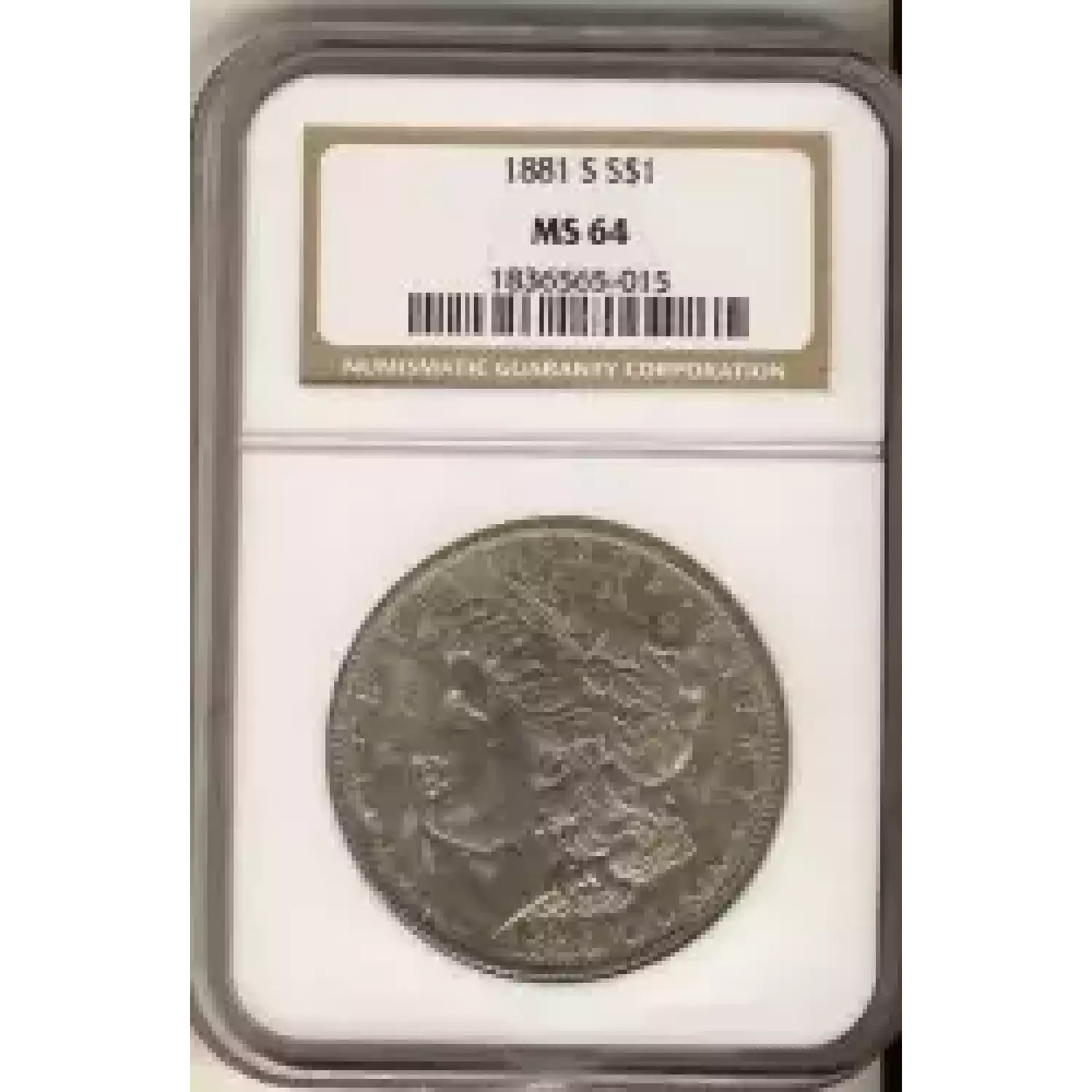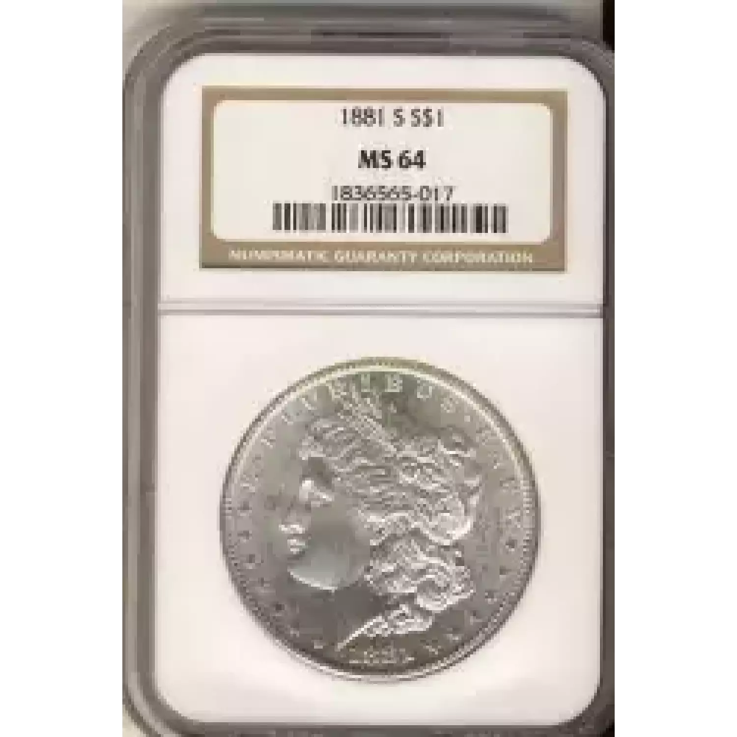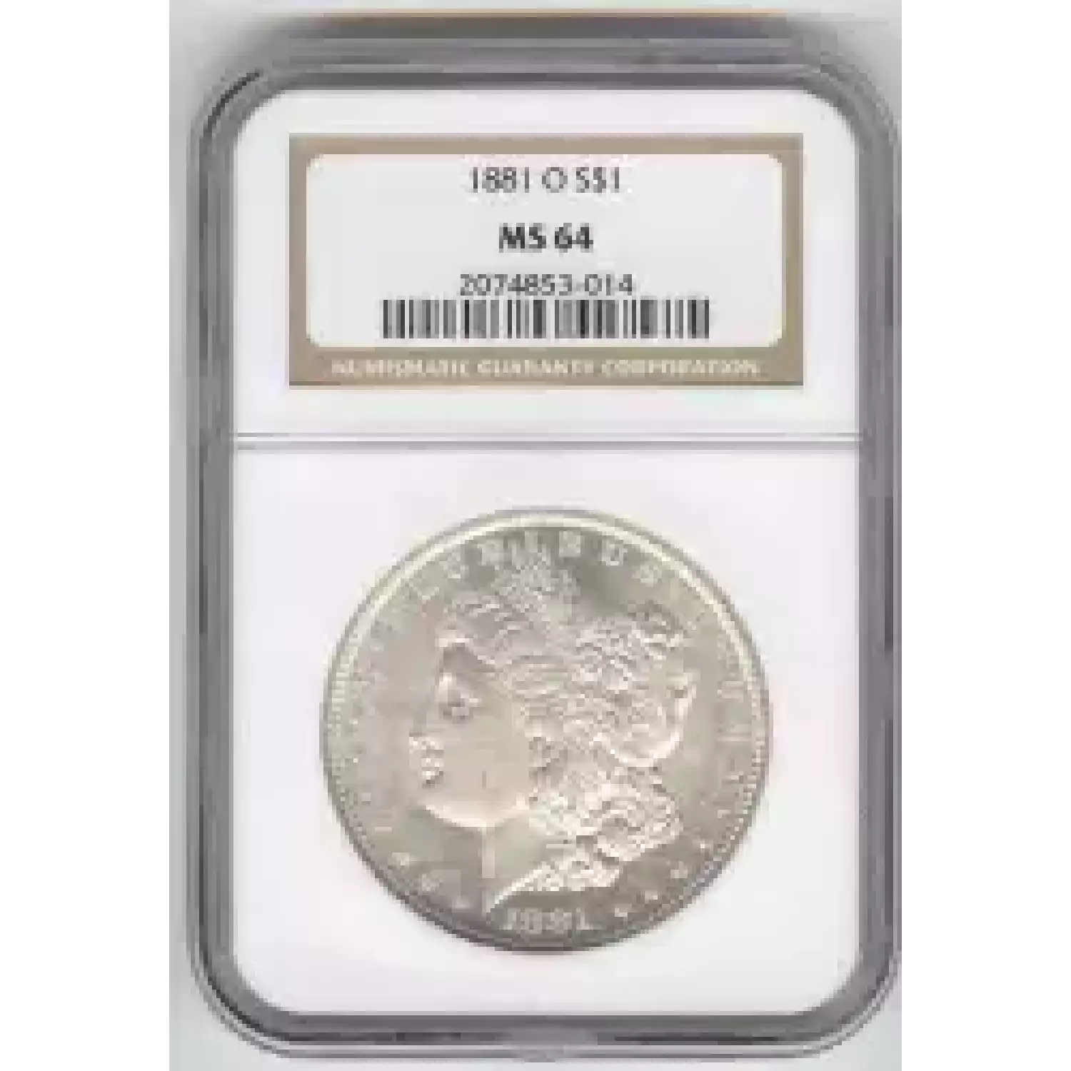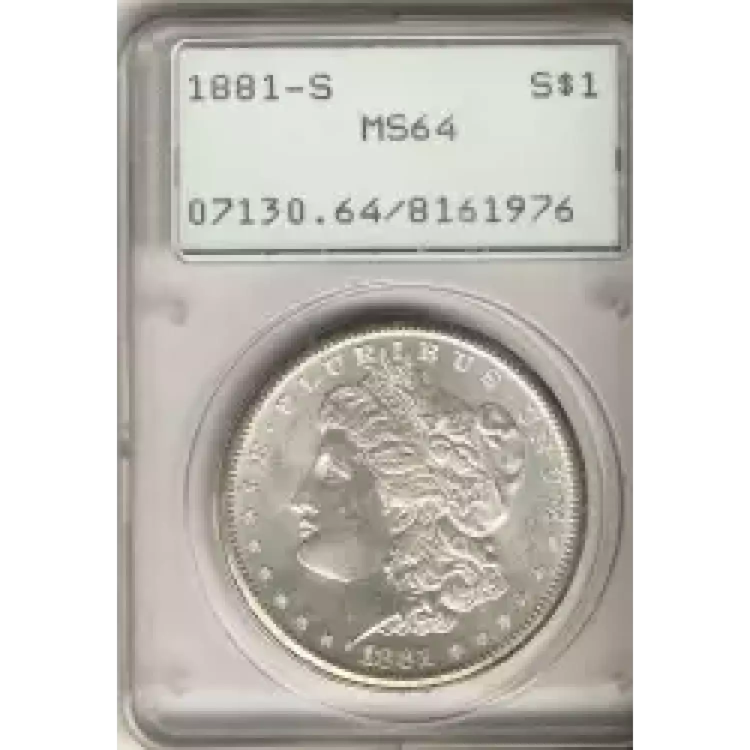 504006 | 1881-MS-64 Morgan Silver Dollar PCGS MS-64 | PCGS | MS-64 | Sold: 10/03/2007 | $170 |