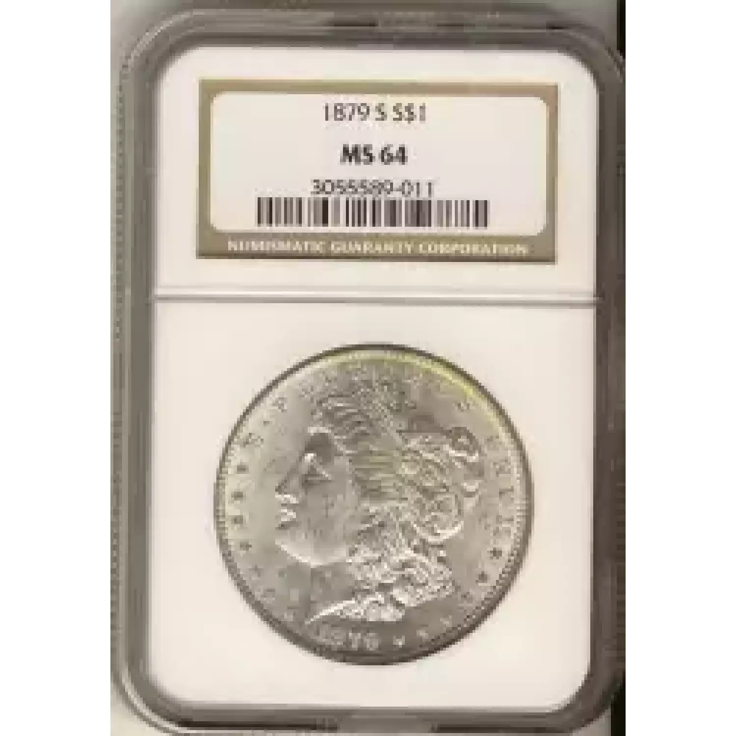504140 | 1879-MS-64 Morgan Silver Dollar PCGS MS-64 | PCGS | MS-64 | Sold: 16/12/2007 | $110 |
