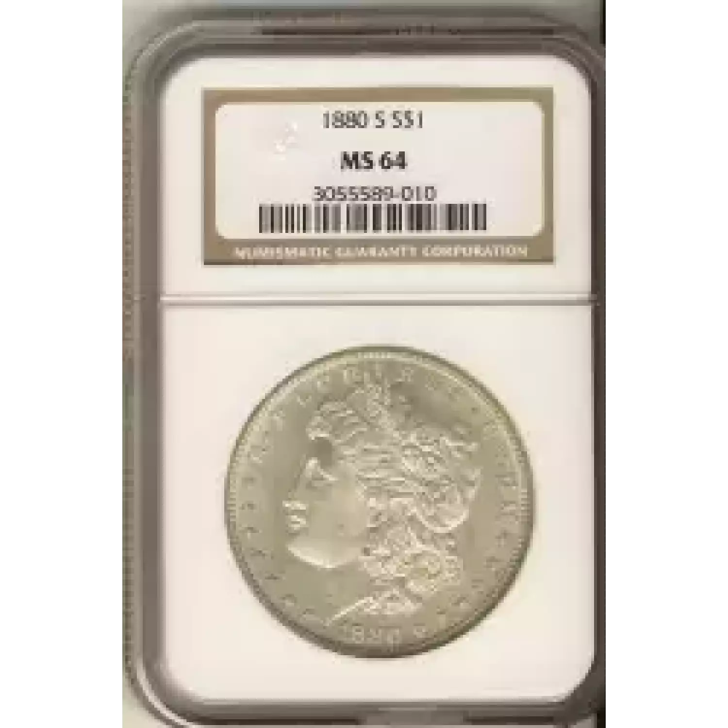 504904 | 1880-MS-64 Morgan Silver Dollar NGC MS-64 | NGC | MS-64 | Sold: 01/08/2009 | $150 |