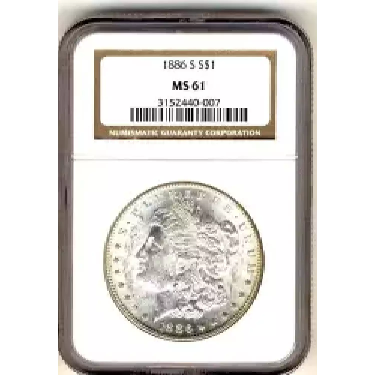 504893 | 1886-MS-64 Morgan Silver Dollar PCGS MS-64 | PCGS | MS-64 | Sold: 03/07/2011 | $500 |