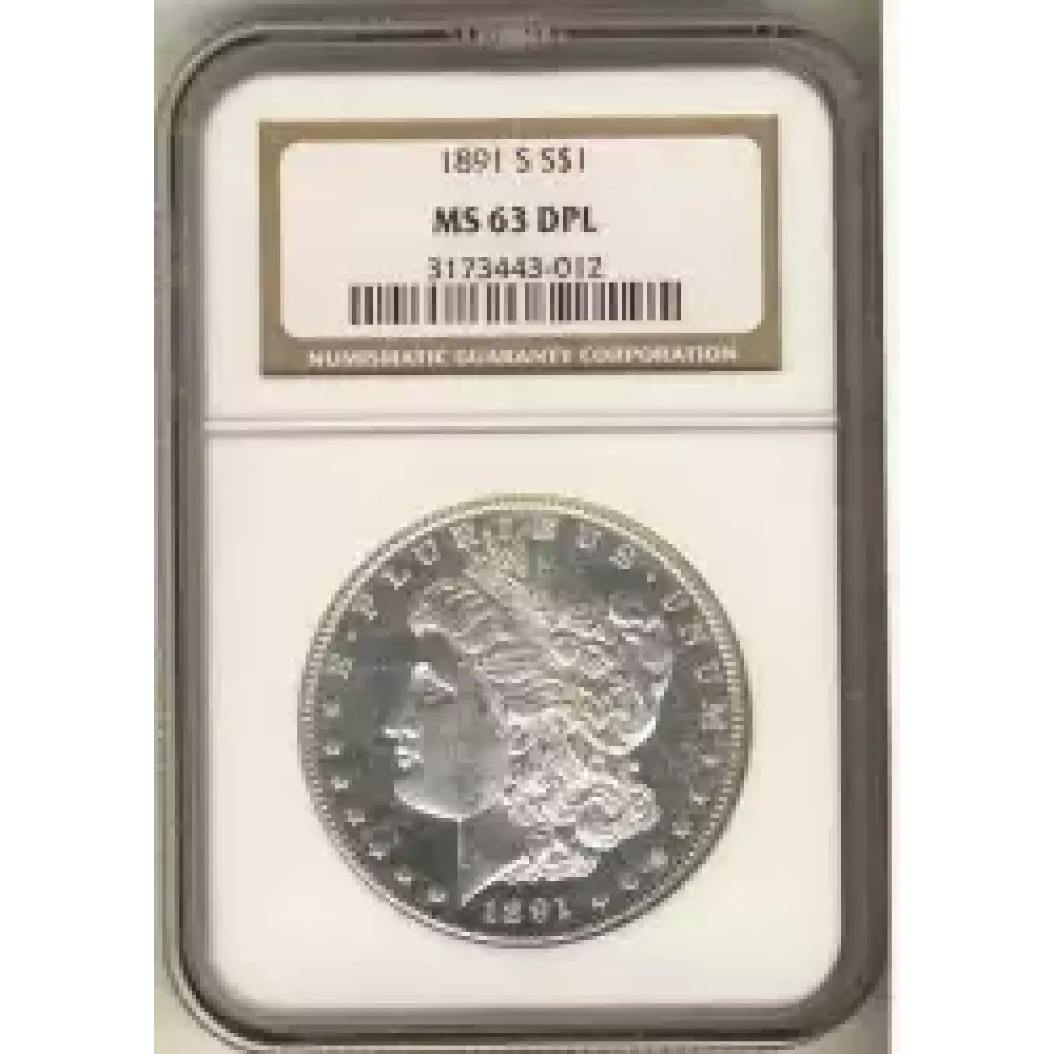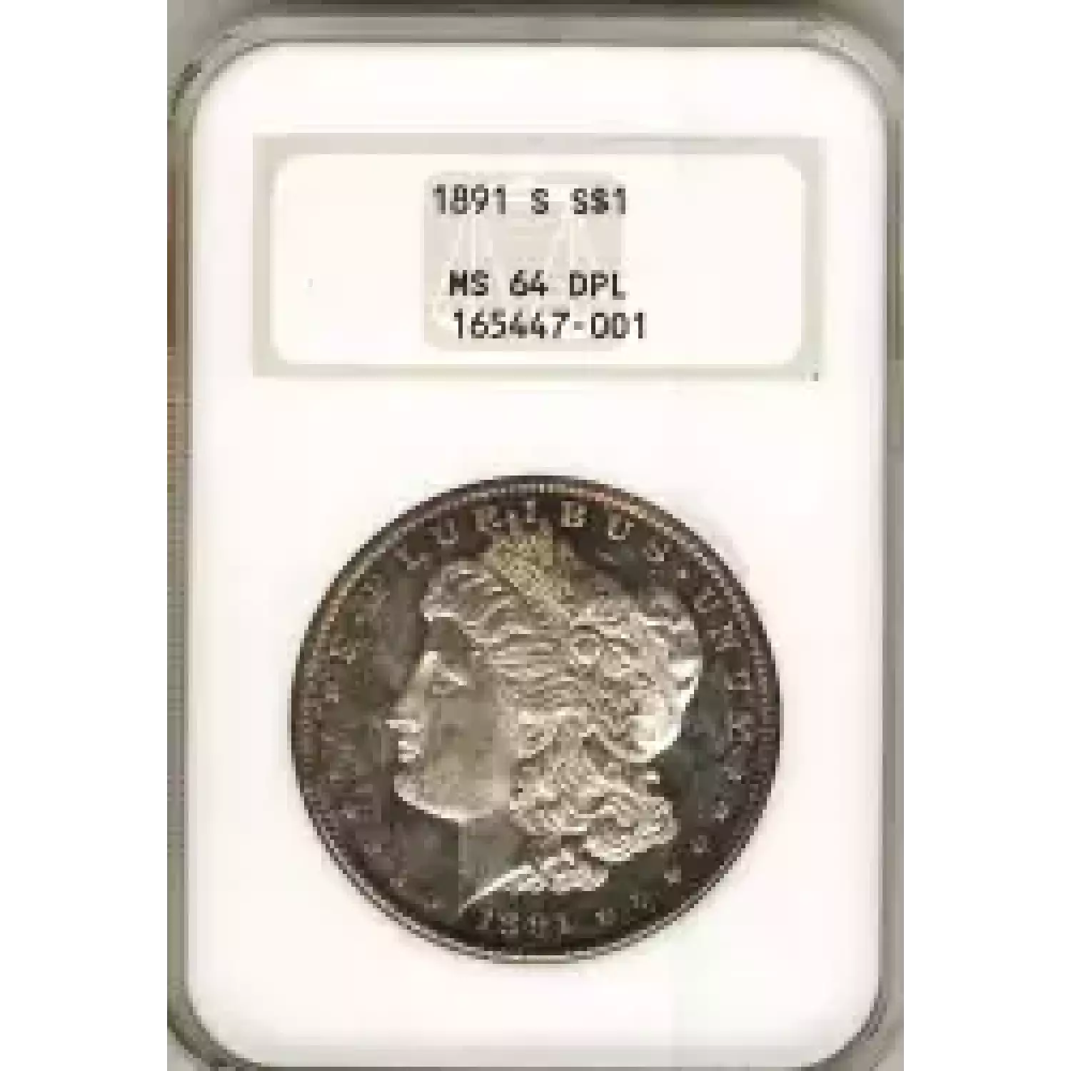 504938 | 1891-MS-63 Morgan Silver Dollar NGC MS-63 DPL | NGC | MS-63 | Sold: 26/08/2009 | $500 |