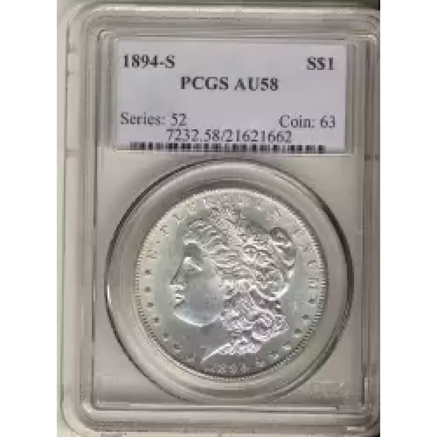 504128 | 1894-AU-58 Morgan Silver Dollar NGC AU-58 | NGC | AU-58 | Sold: 08/08/2007 | $340 |