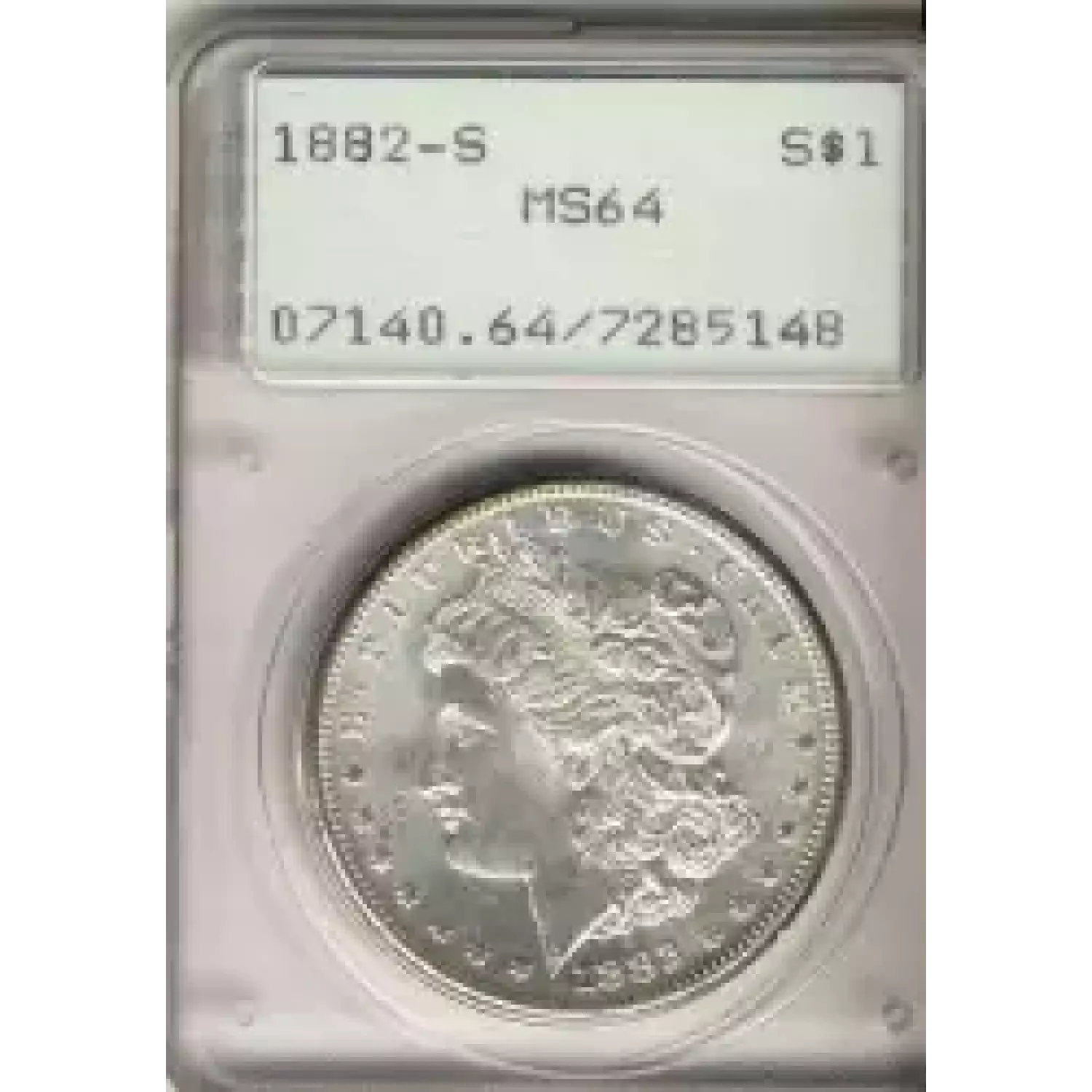 504124 | 1882-MS-64 Morgan Silver Dollar PCGS MS-64 DMPL | PCGS | MS-64 | Sold: 15/07/2007 | $925 |