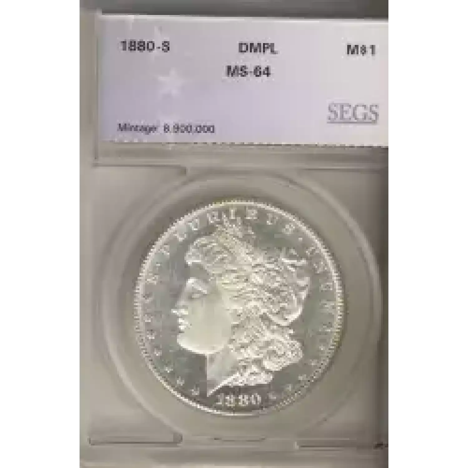 504820 | 1890-MS-62 Morgan Silver Dollar PCGS MS-62 DMPL | PCGS | MS-62 | Sold: 09/08/2009 | $725 |